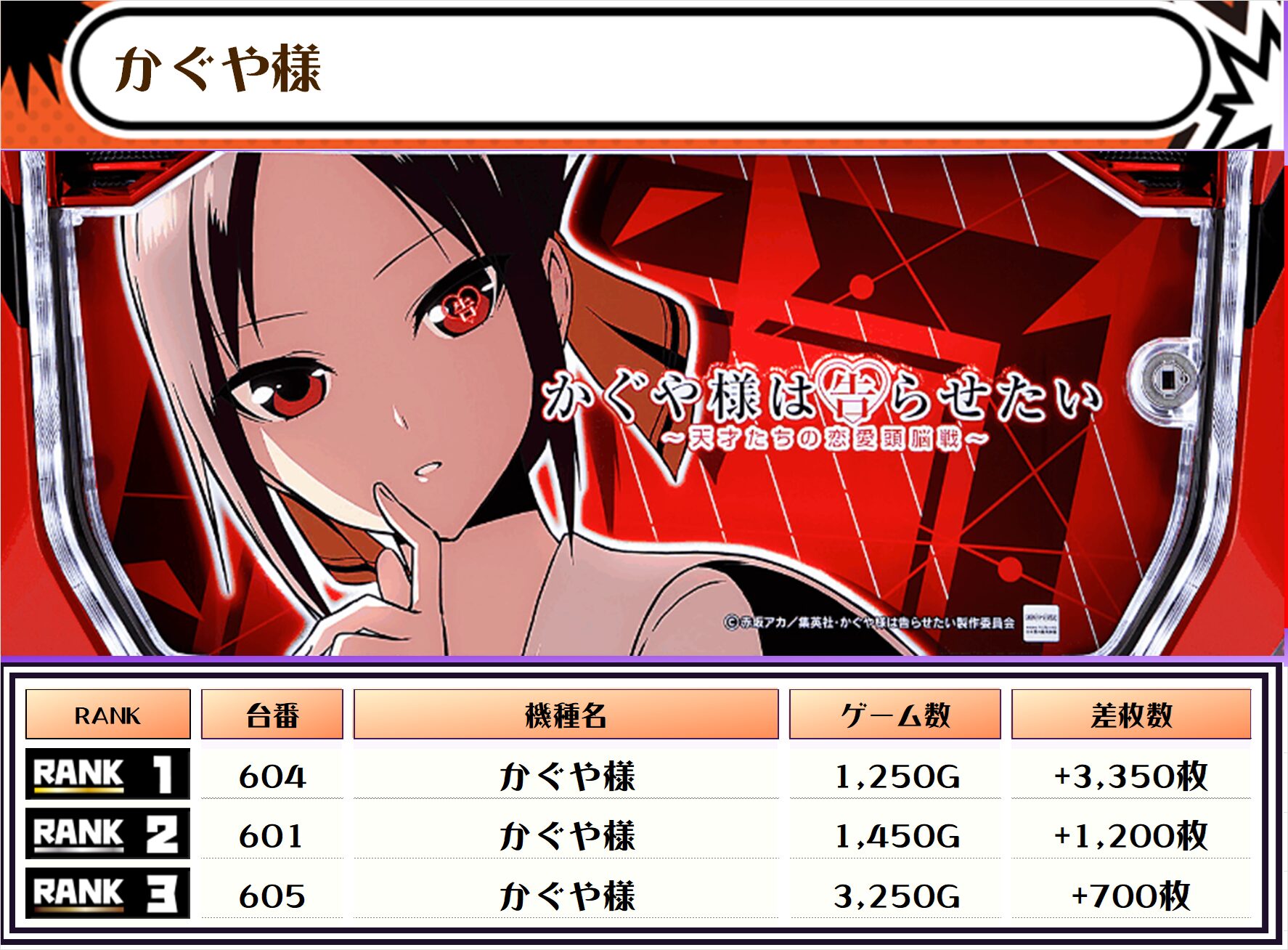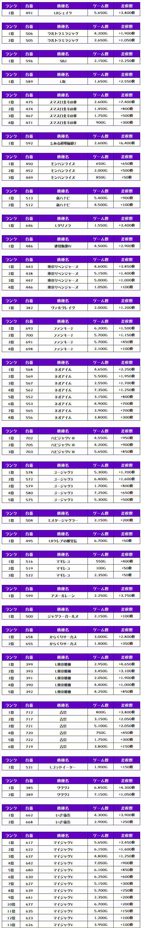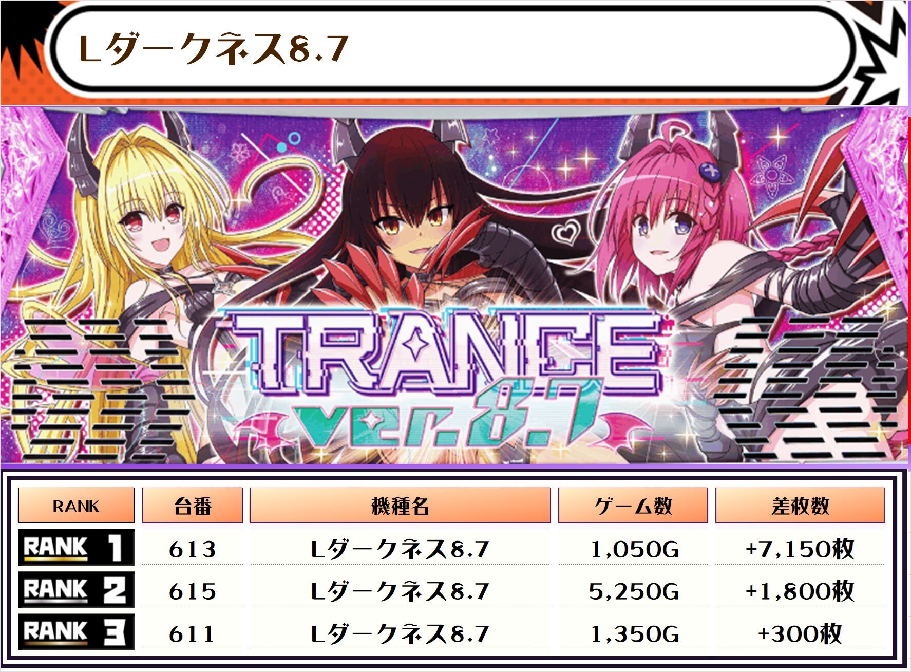 2位には【スマスロ北斗の拳・475番台】の+7,400枚、3位には【Lダークネス8.7・613番台】の+7,150枚がランクインしました📷