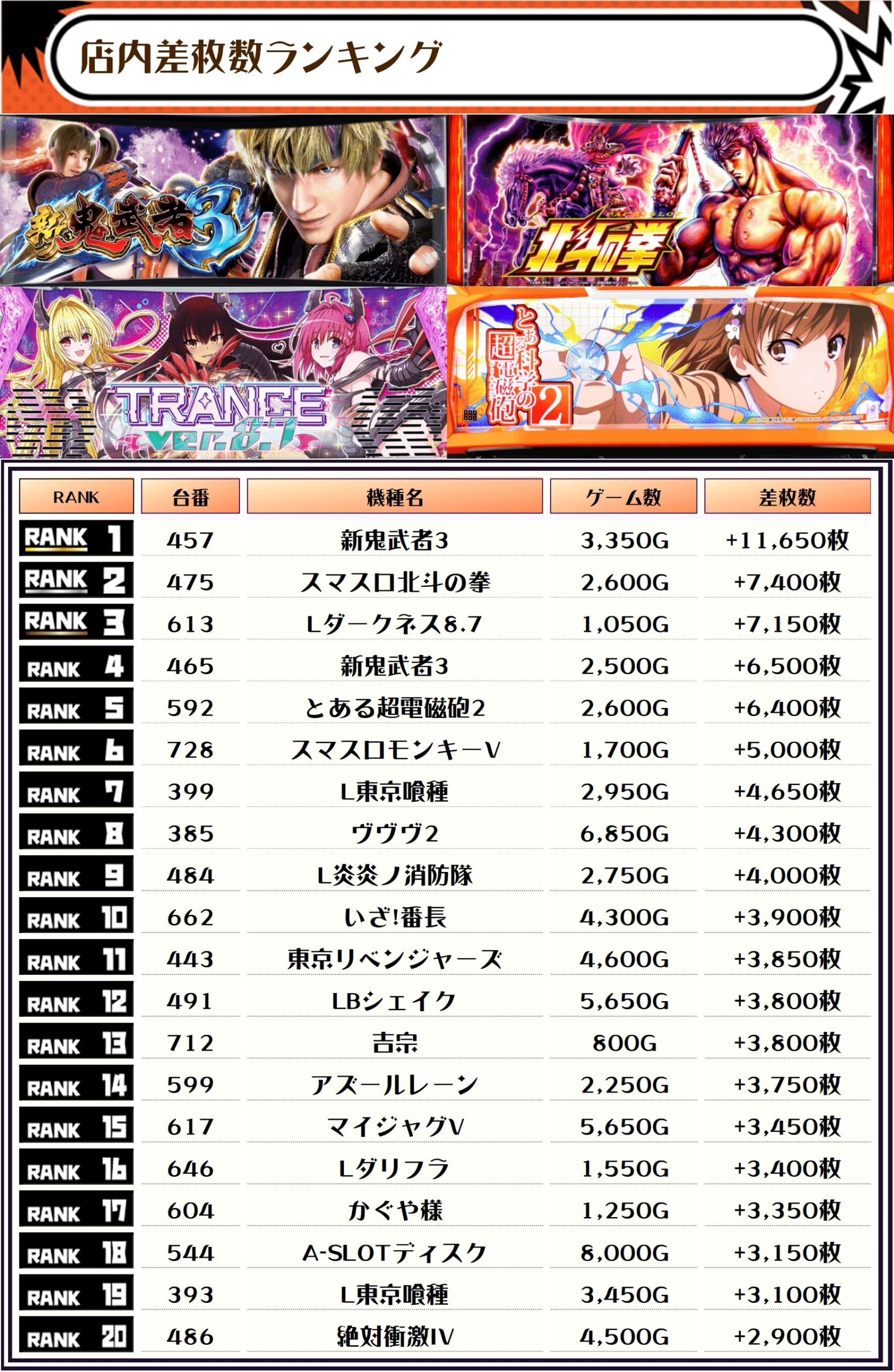 ちなみに、この取材では複数台設置の全機種および全体差枚トップ20をランキング形式でお伝えしていきます!!
