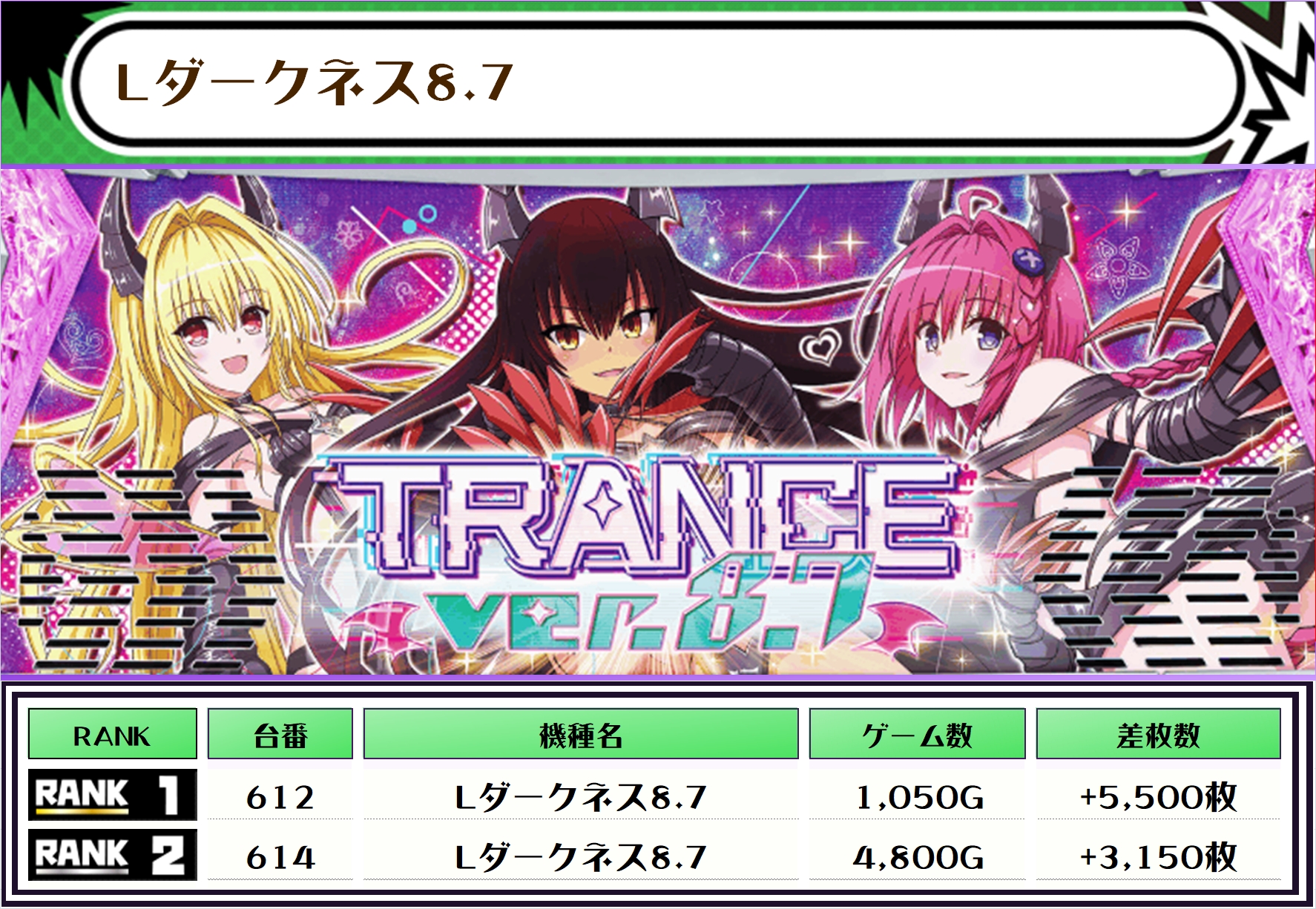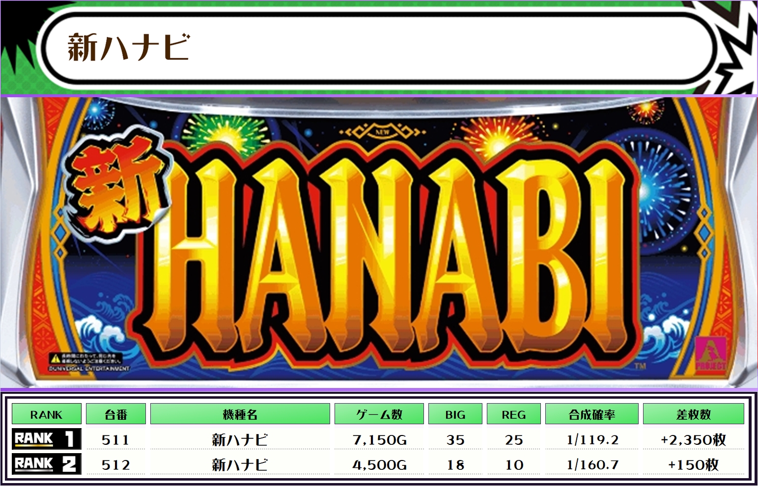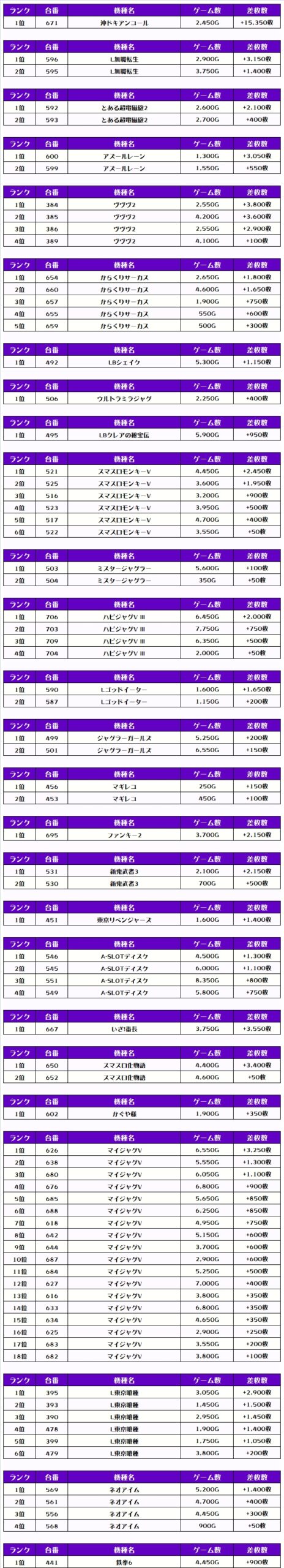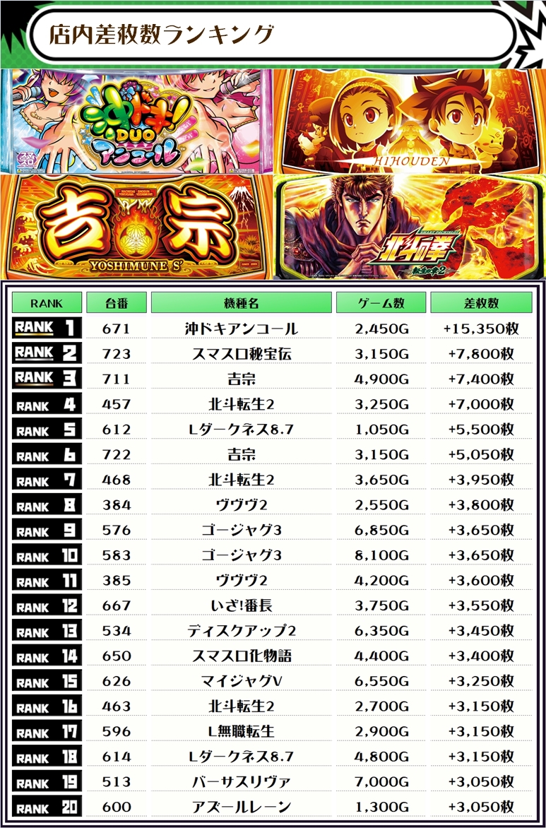 早速、この日の機種別差枚ランキングをチェックしてみましょう!!