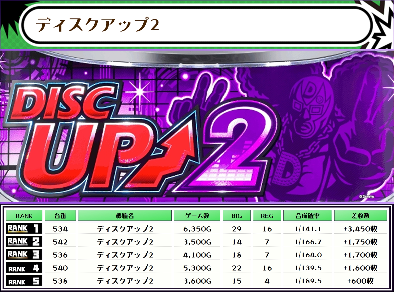 そして、全体の差枚ランキングがこちらっ🌟