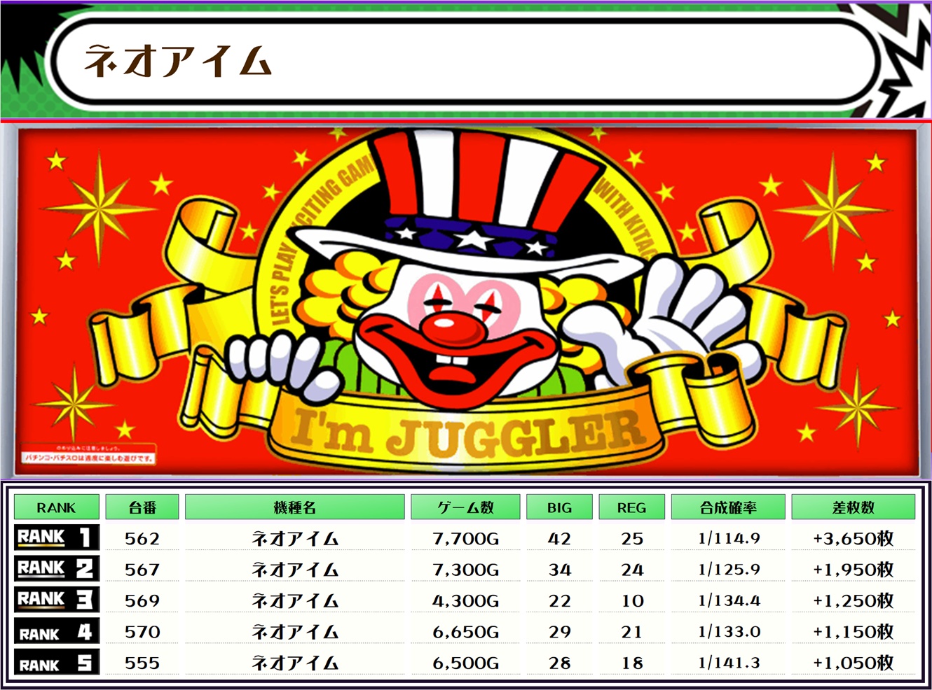 ちなみに、この取材では複数台設置の全機種および全体差枚トップ20をランキング形式でお伝えしていきます!!