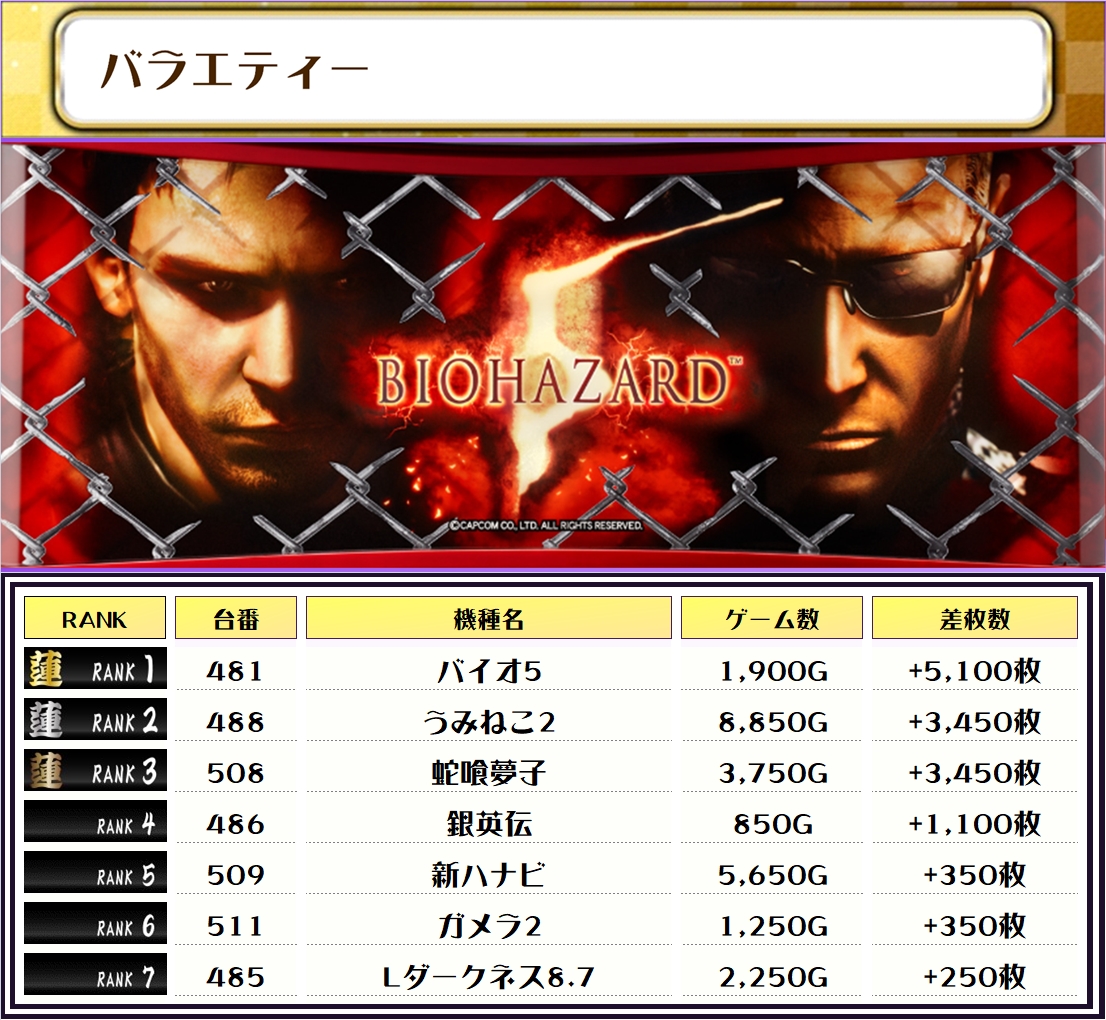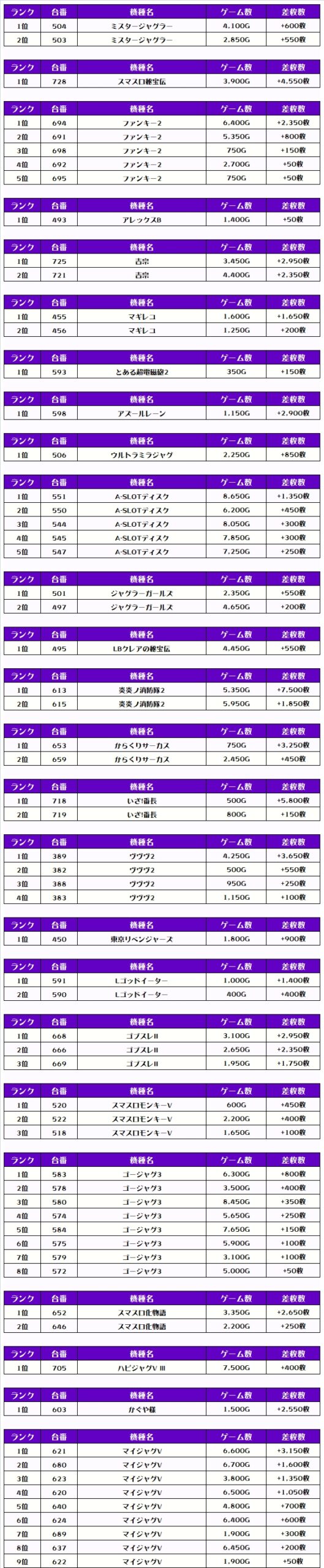早速、この日の機種別差枚ランキングをチェックしてみましょう!!