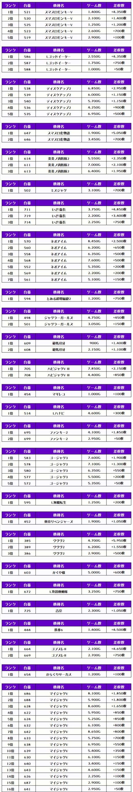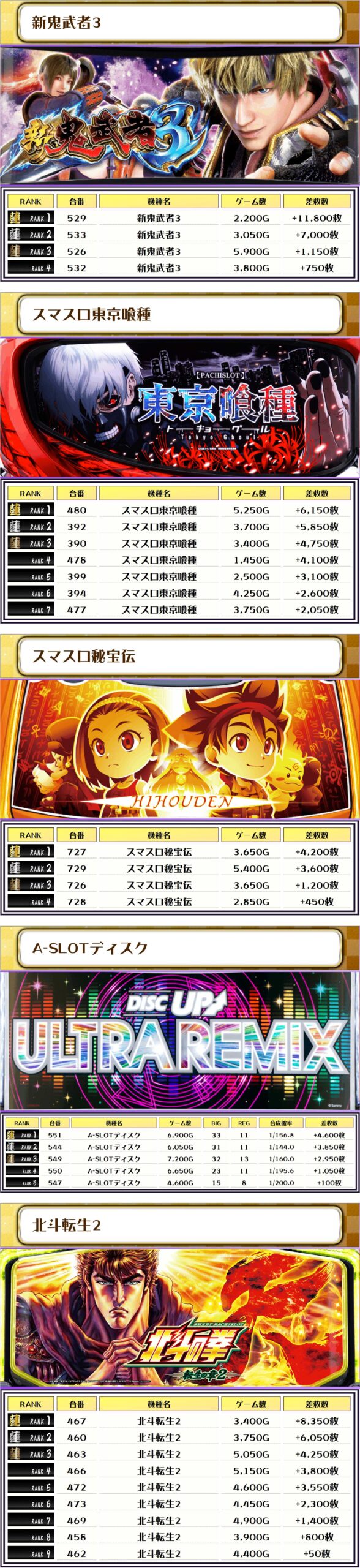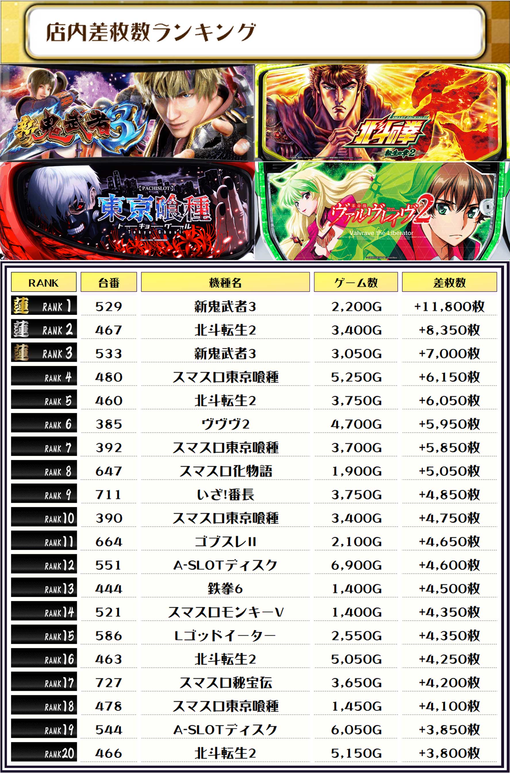 早速、この日の機種別差枚ランキングをチェックしてみましょう!!