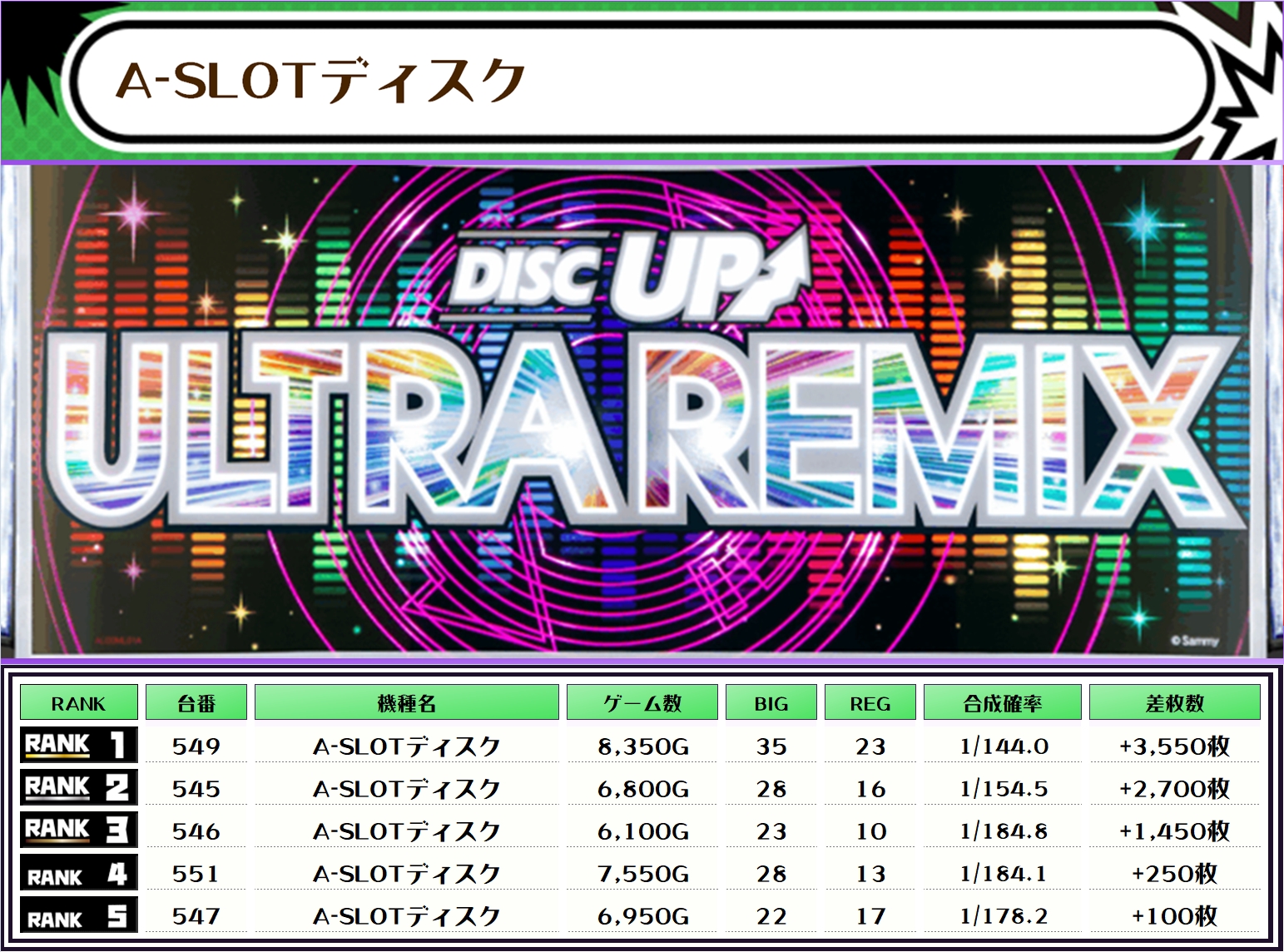 ちなみに、この取材では複数台設置の全機種および全体差枚トップ20をランキング形式でお伝えしていきます‼️