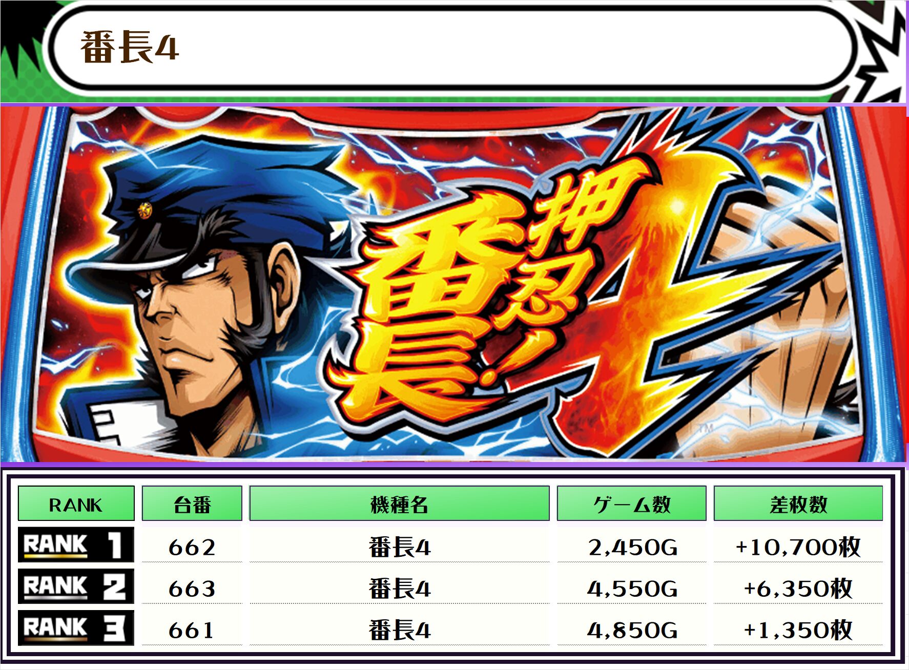 この日、全体の差枚トップに輝いたのは【番長4・662番台】で+10,700枚‼️