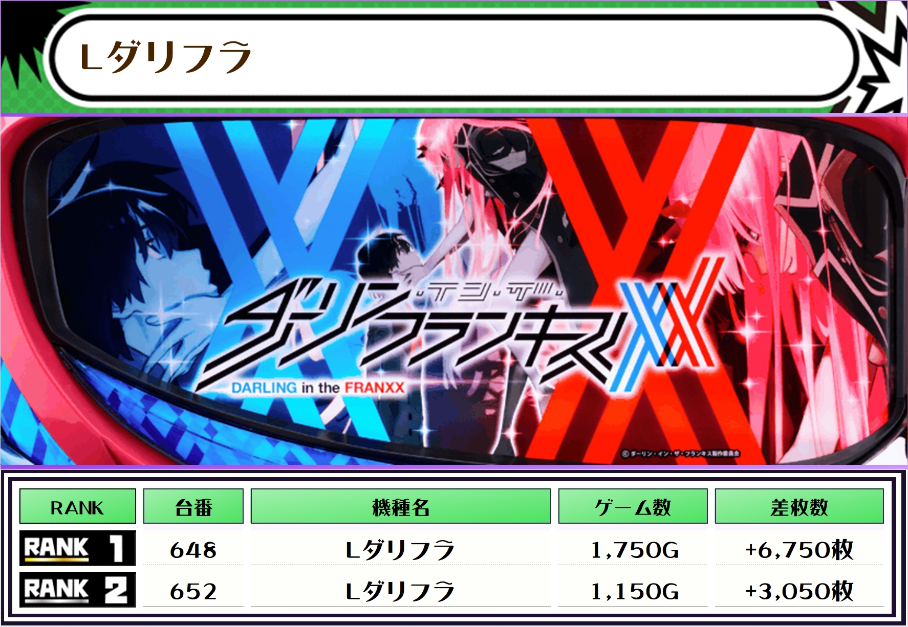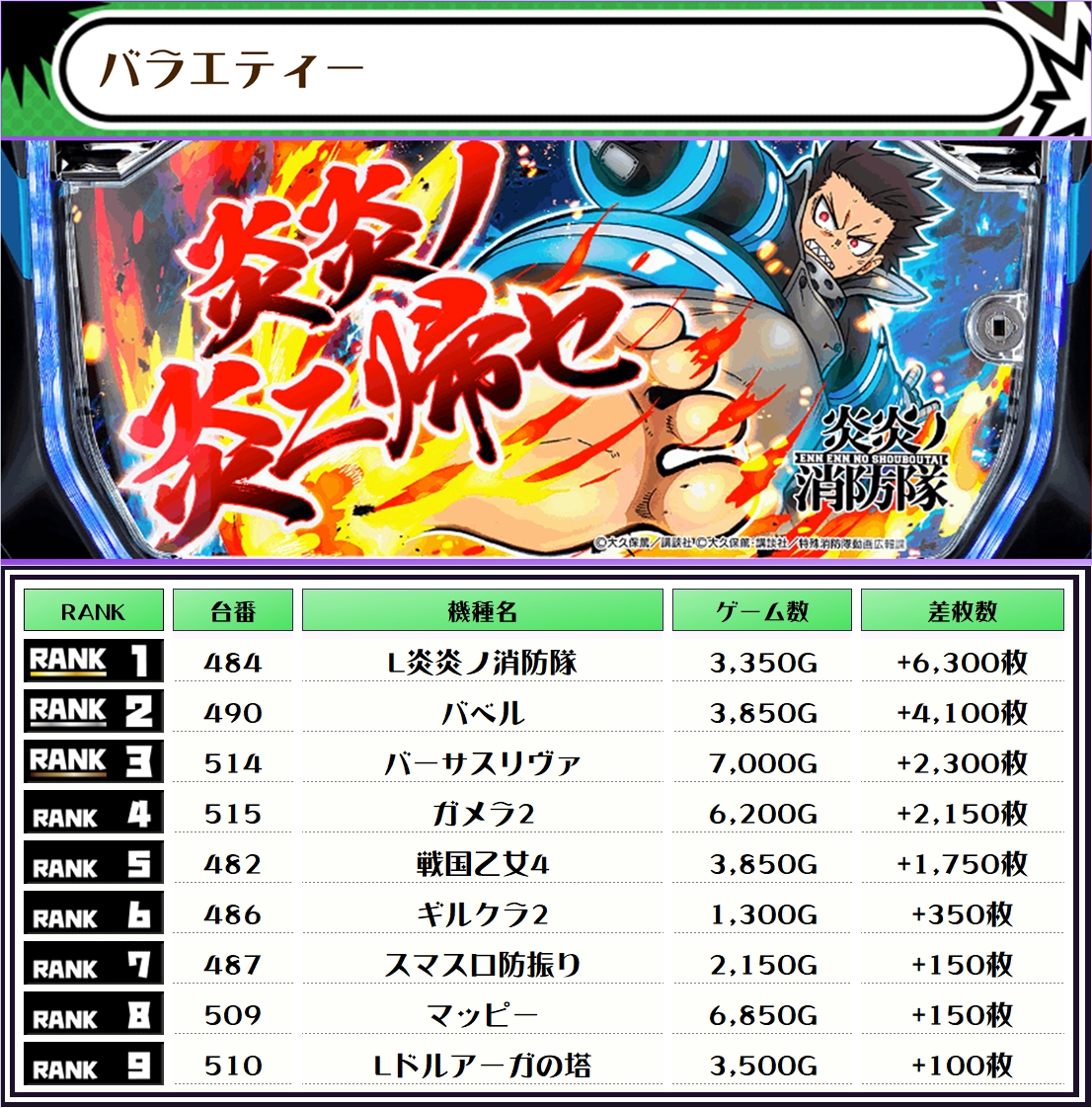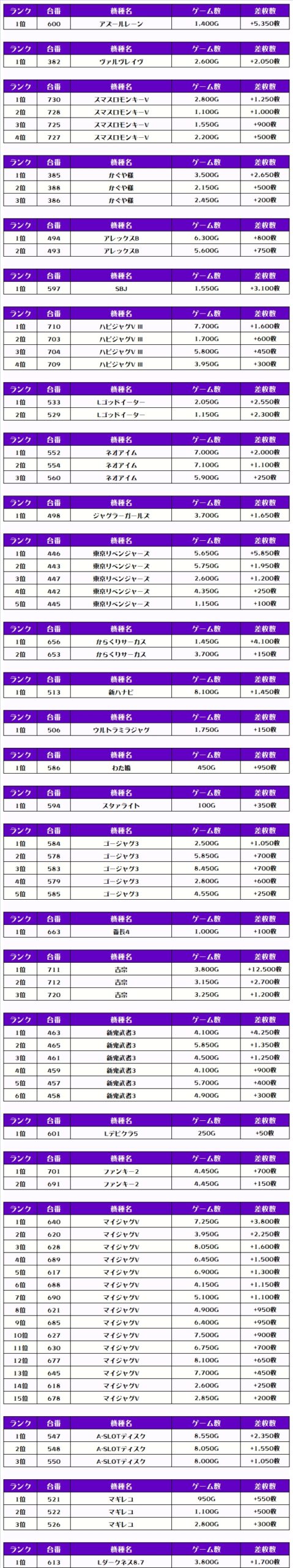 最後に、この日の店内差枚ランキングをご覧ください
