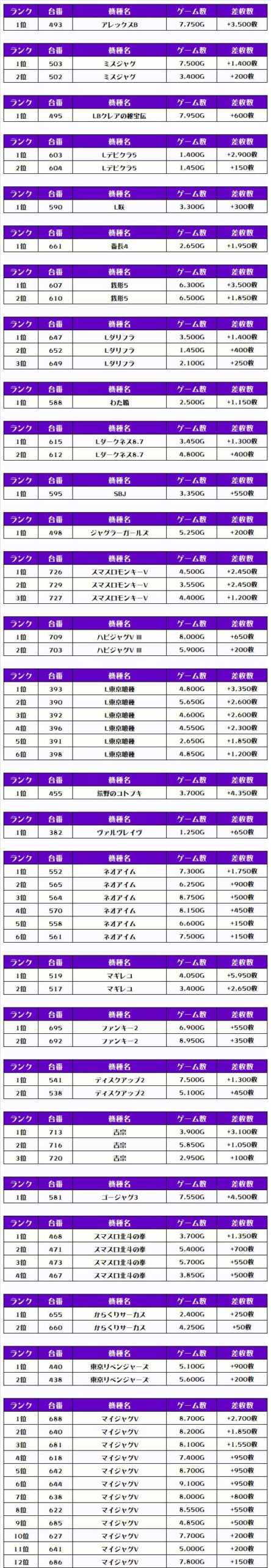 最後に、この日の店内差枚ランキングをご覧ください
