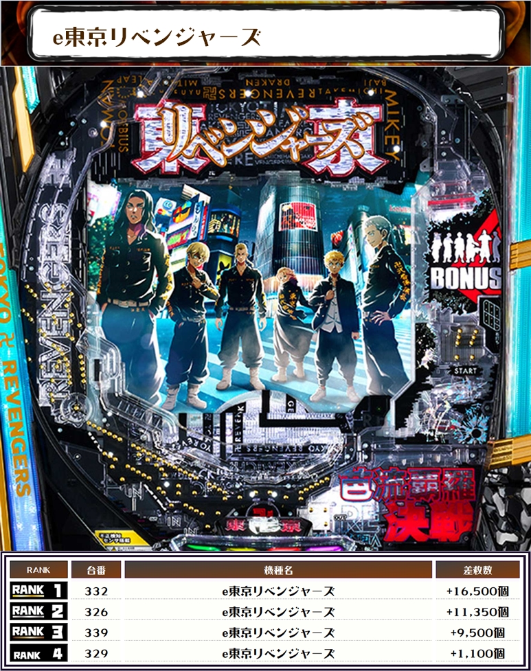 e東京喰種やeFブルーロック、e東京リベンジャーズ、P大海物語などランキングの顔ぶれがいつもより種類が多く賑やかじゃったのう