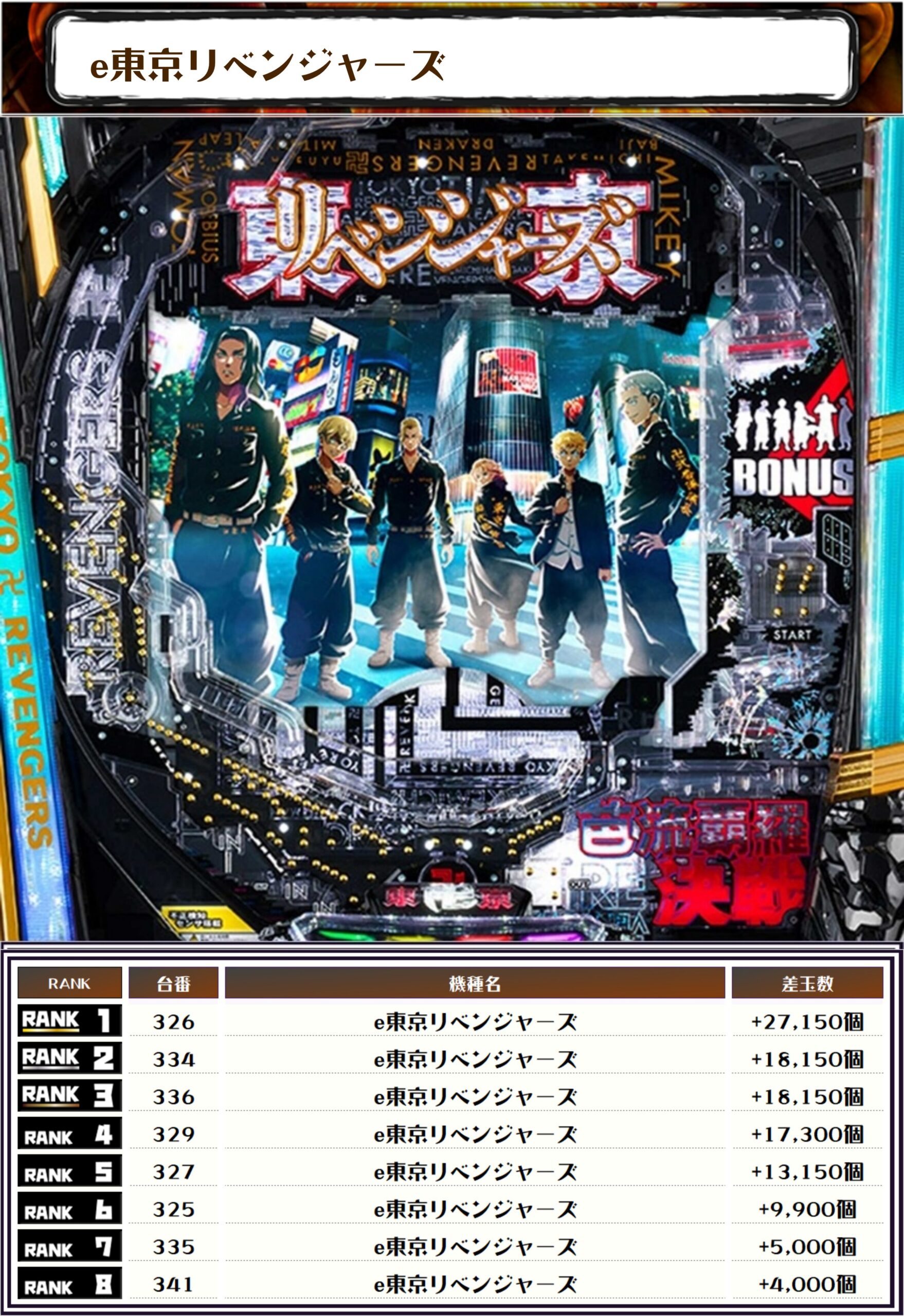 今回の注目は2位のe東京リベンジャーズがいつもの新世紀エヴァンゲリオン~未来への咆哮~やe牙狼黄金騎士極限に混ざって多数ランクインしておったのう🔥🔥🔥🔥