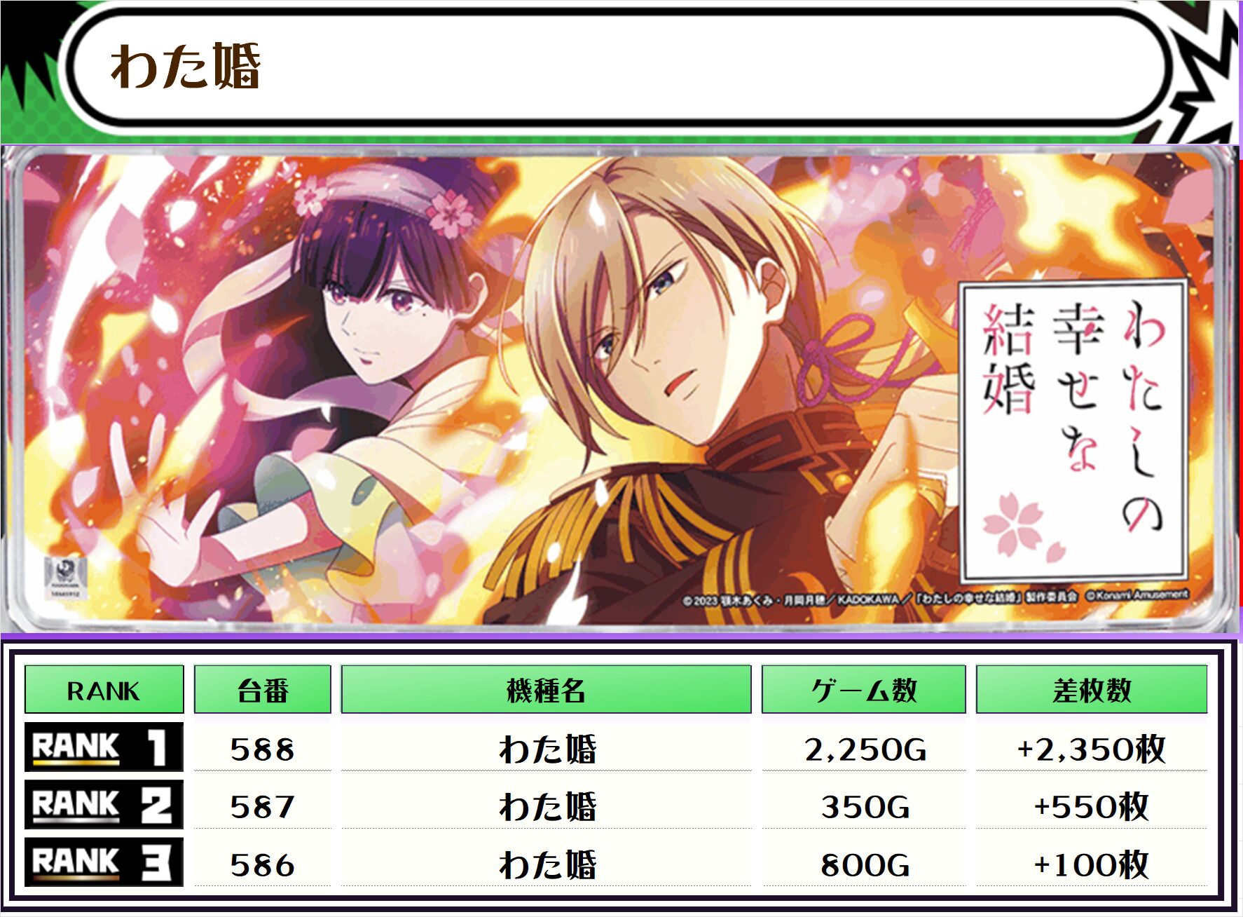 銭形、ウルトラミラジャグ、わた婚は全台がプラス!