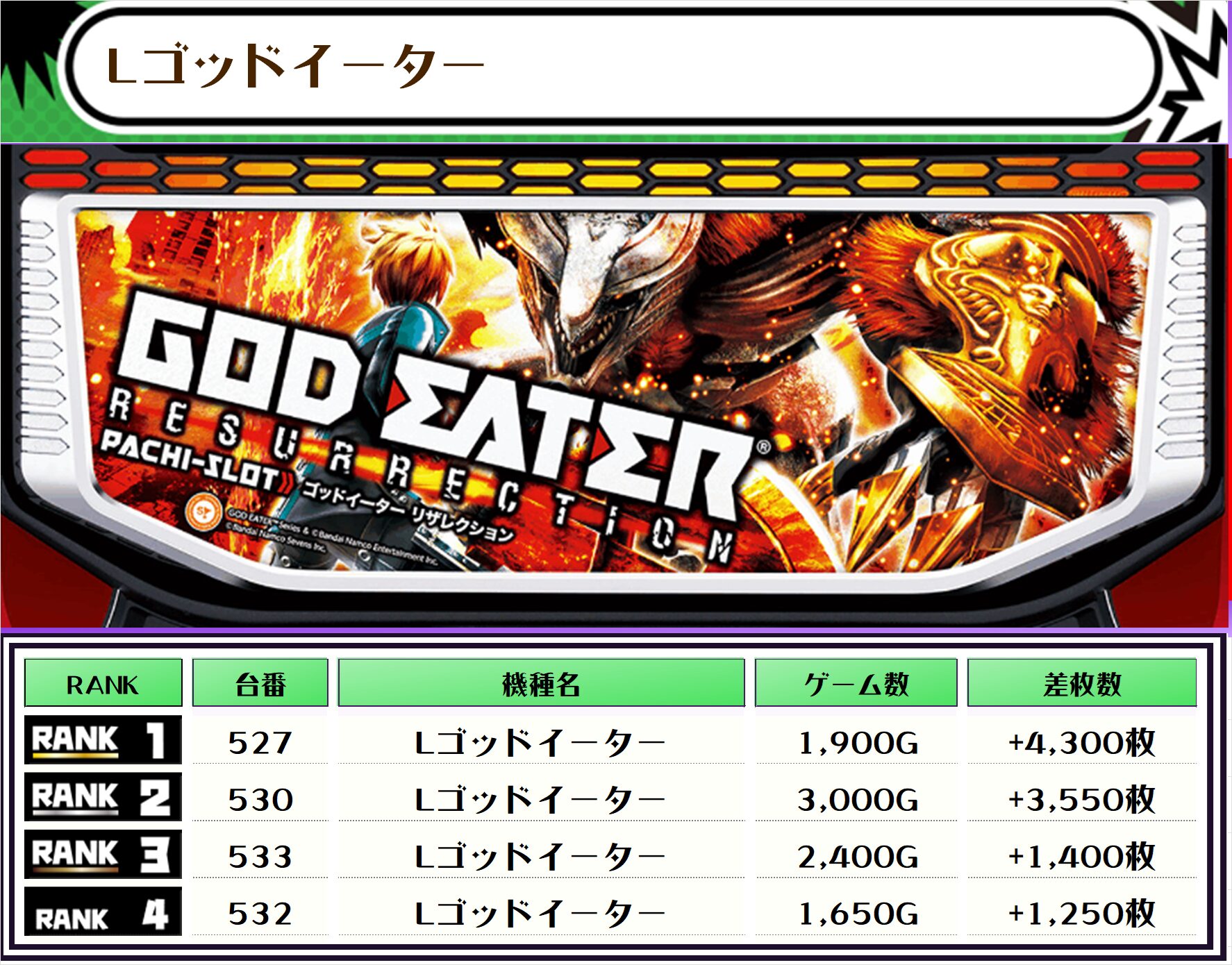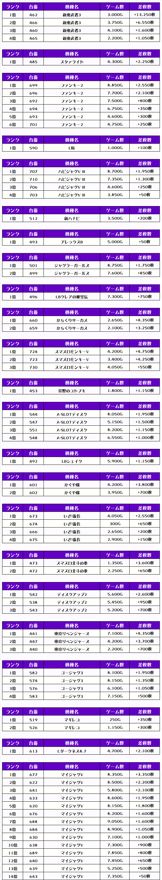そして、全体の差枚ランキングがこちらっ✨