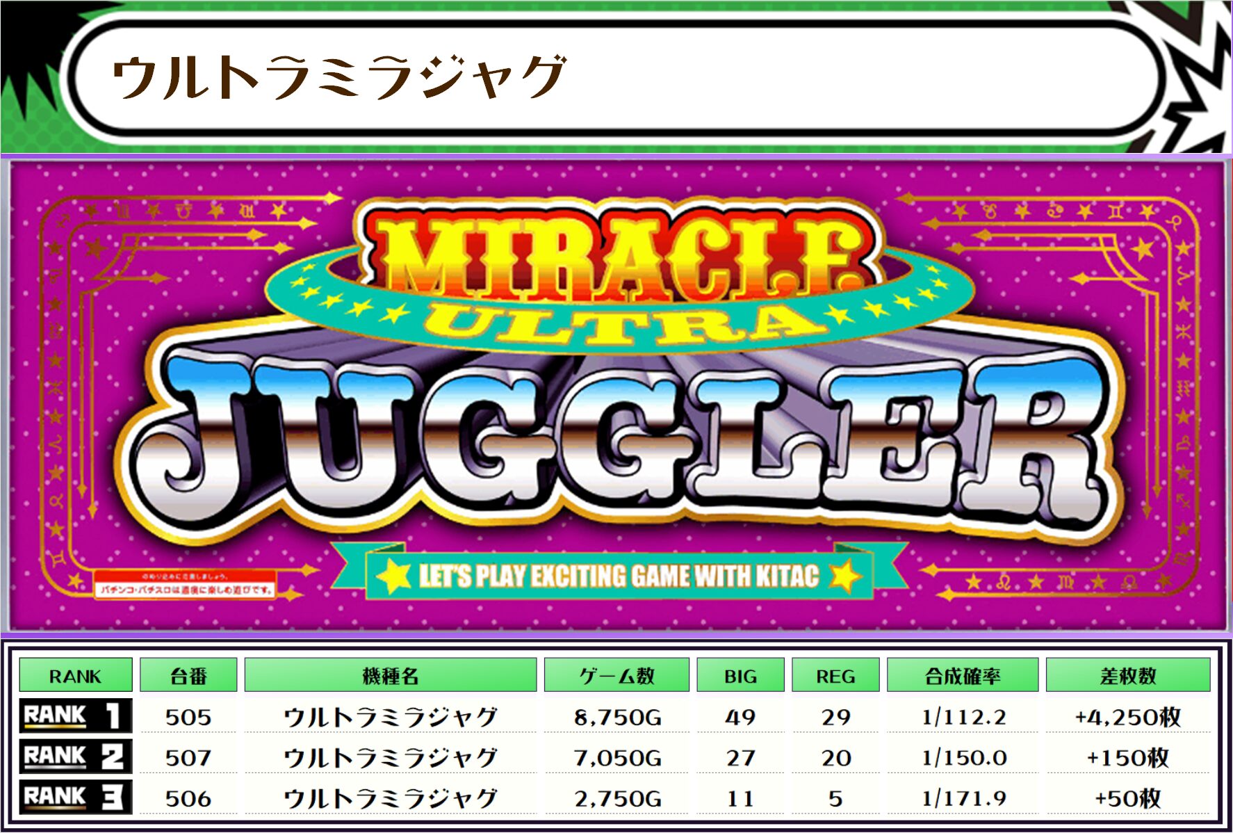 ちなみに、この取材では複数台設置の全機種および全体差枚トップ20をランキング形式でお伝えしていきます‼️