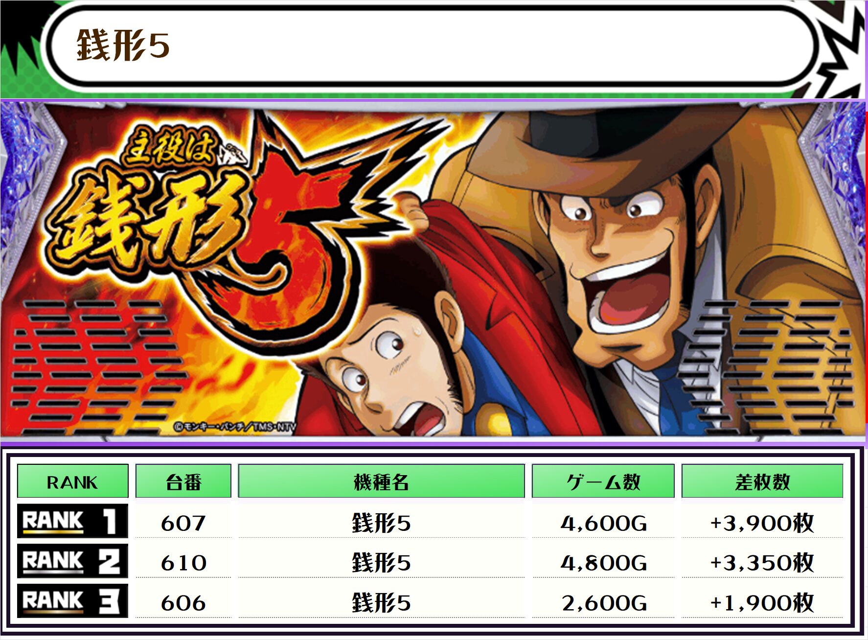 この日、全体の差枚トップに輝いたのは【いざ!番長・674番台】の+12,100枚‼️