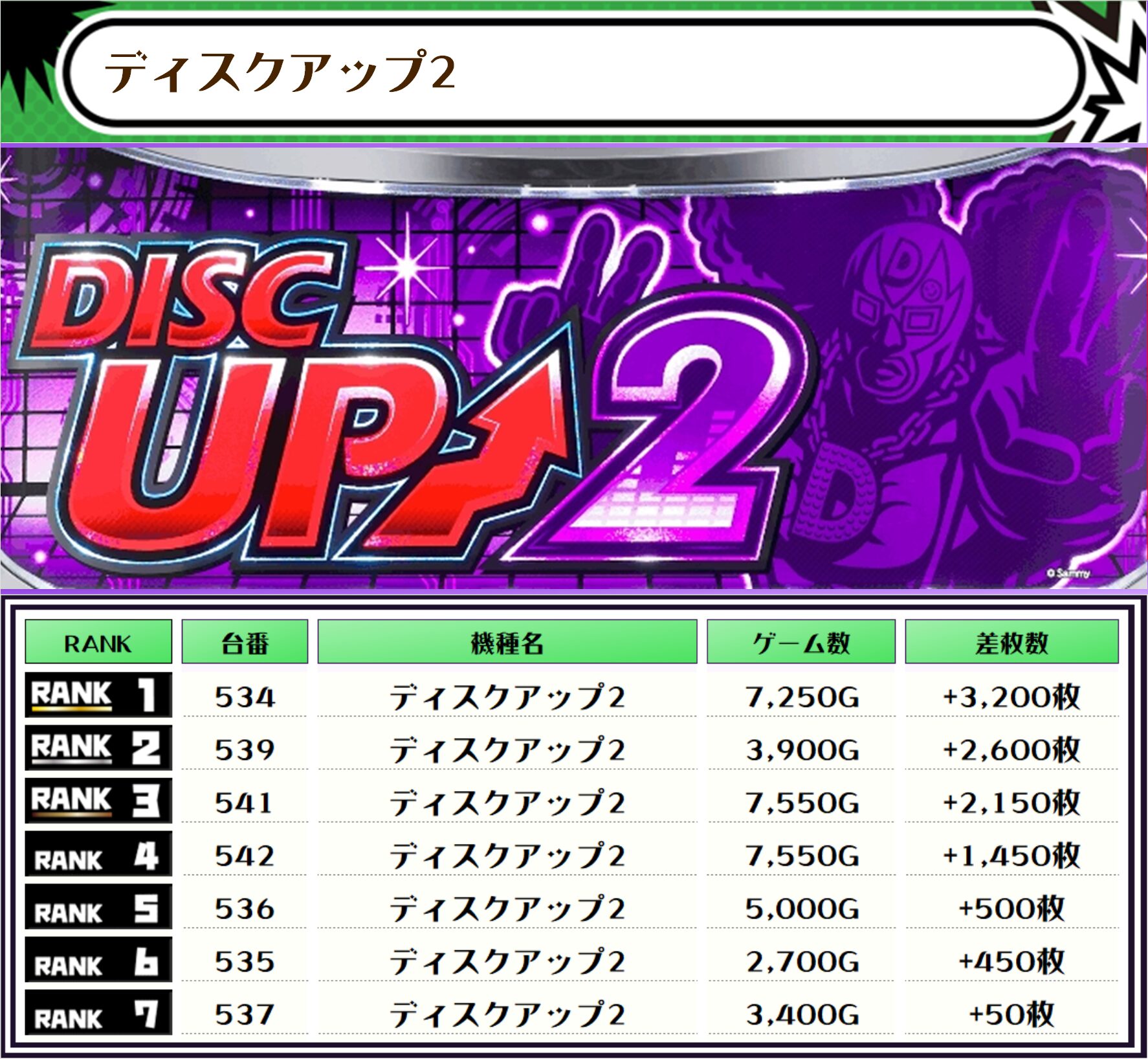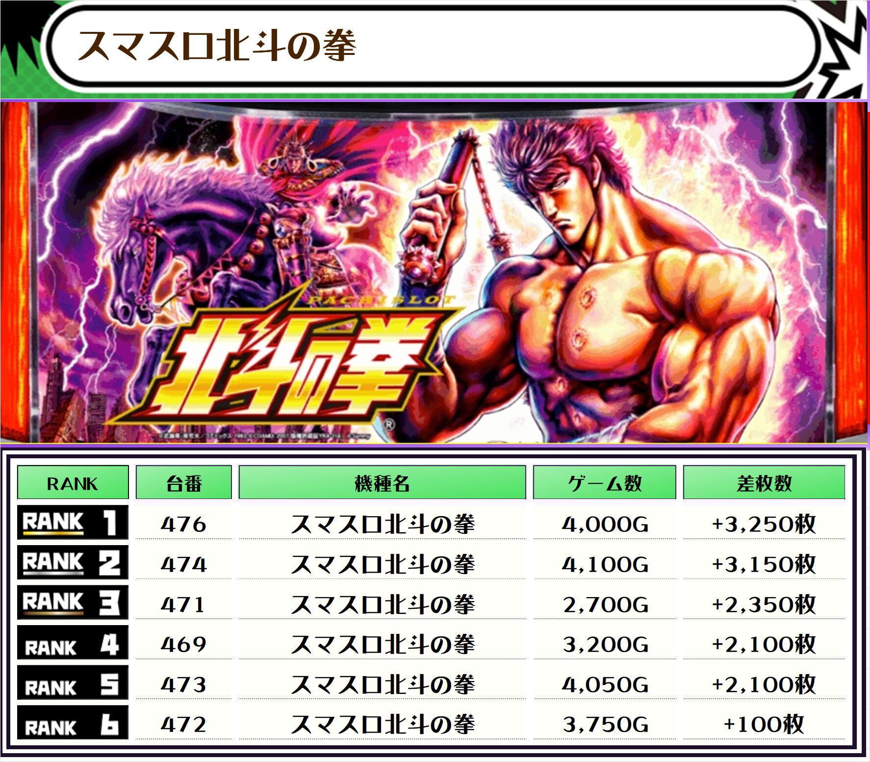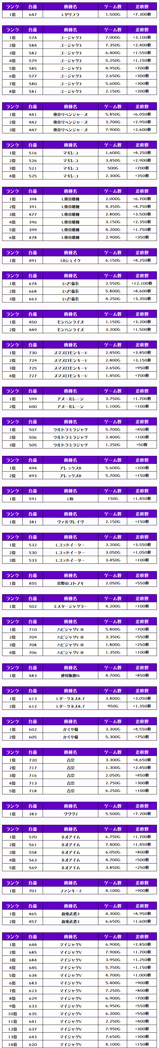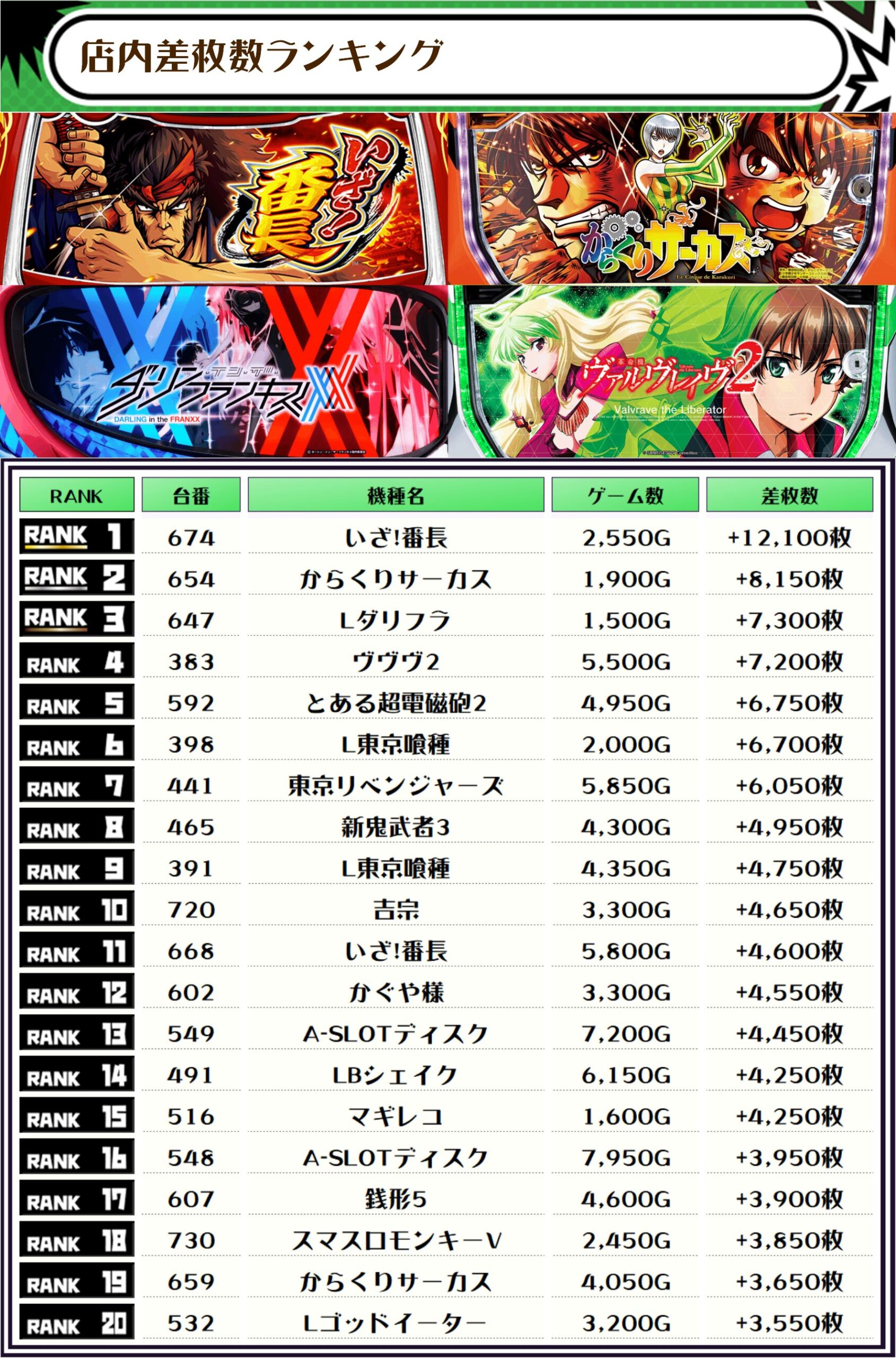 最後に、この日の店内差枚ランキングをご覧ください