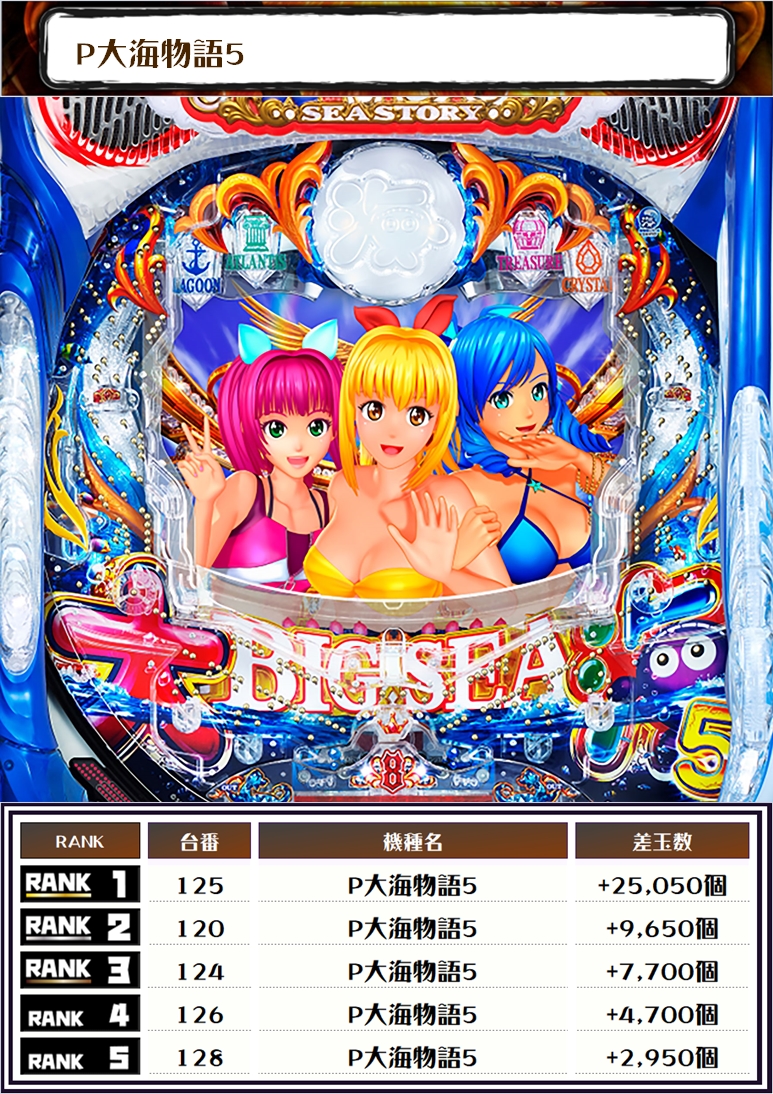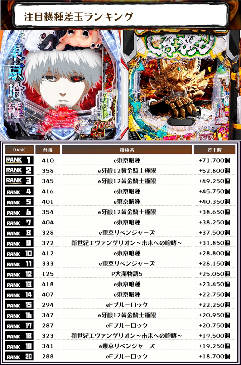 そして、ワシが注目した機種の差玉数ランキングを見てもらおう🥴