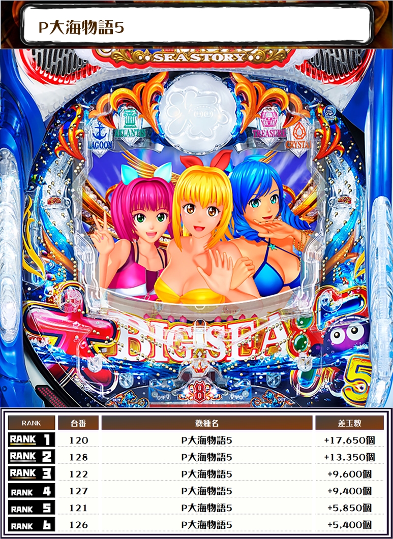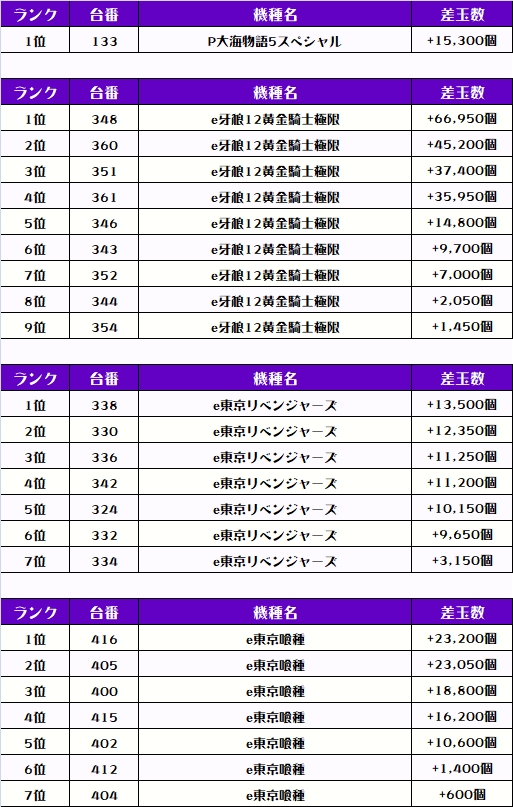 そして、ワシが注目した機種の差玉数ランキングを見てもらおう🥴