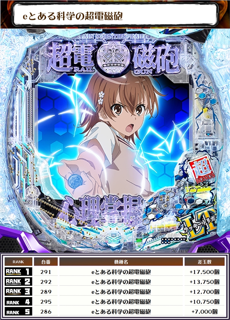 東京喰種は2万発×2、1万発×2、eとある科学の超電磁砲は1万発×2と虎視眈々と上位を狙ってきている感じがするわい✅ 週末の土曜日のパチンコは大いに盛り上がっていたぞい💪💪💪