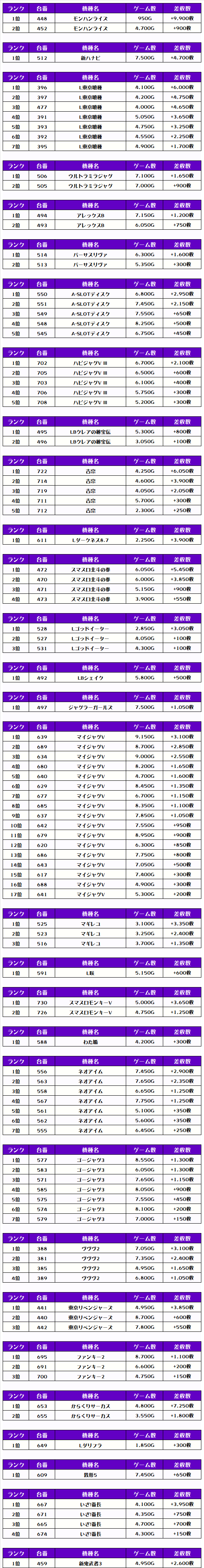 そして、全体の差枚ランキングがこちらっ✨