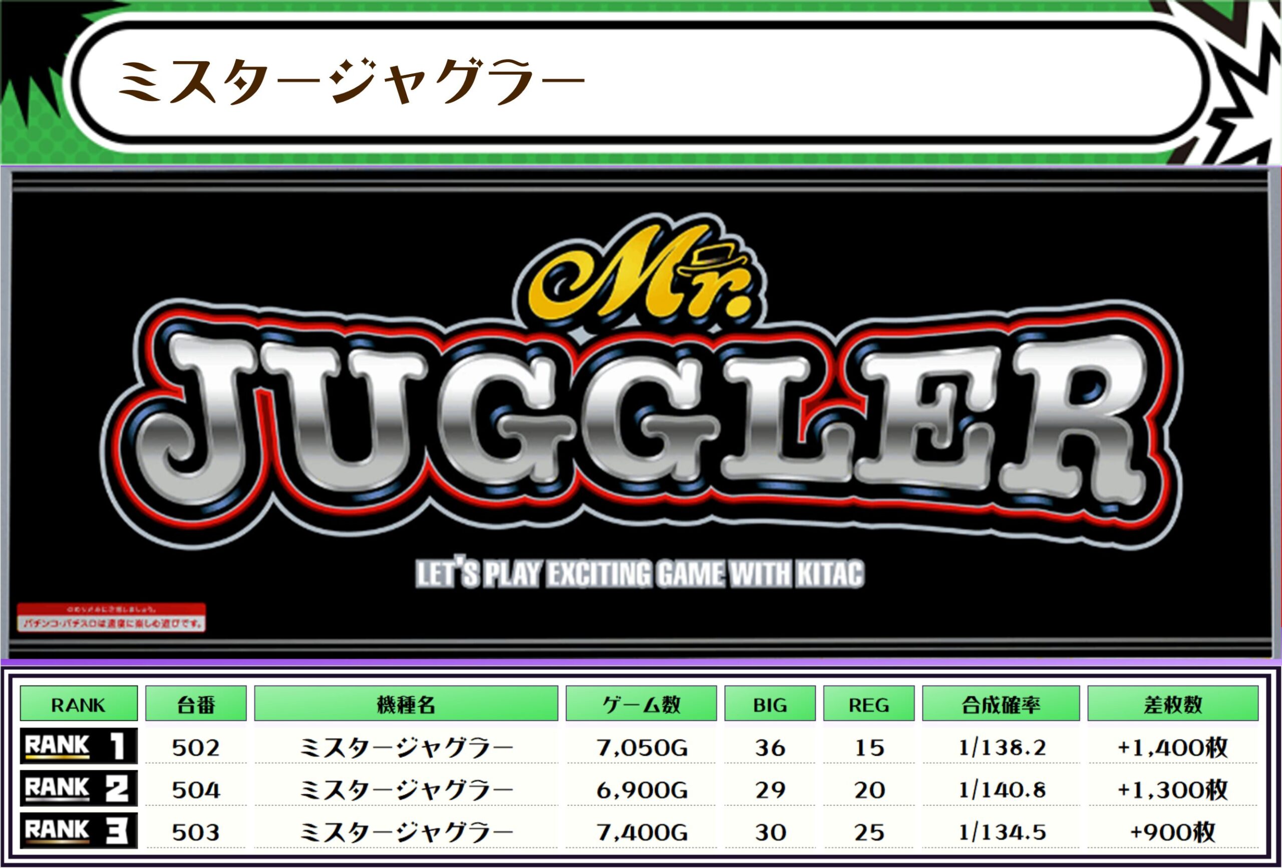 ちなみに、この取材では複数台設置の全機種および全体差枚トップ20をランキング形式でお伝えしていきます‼️