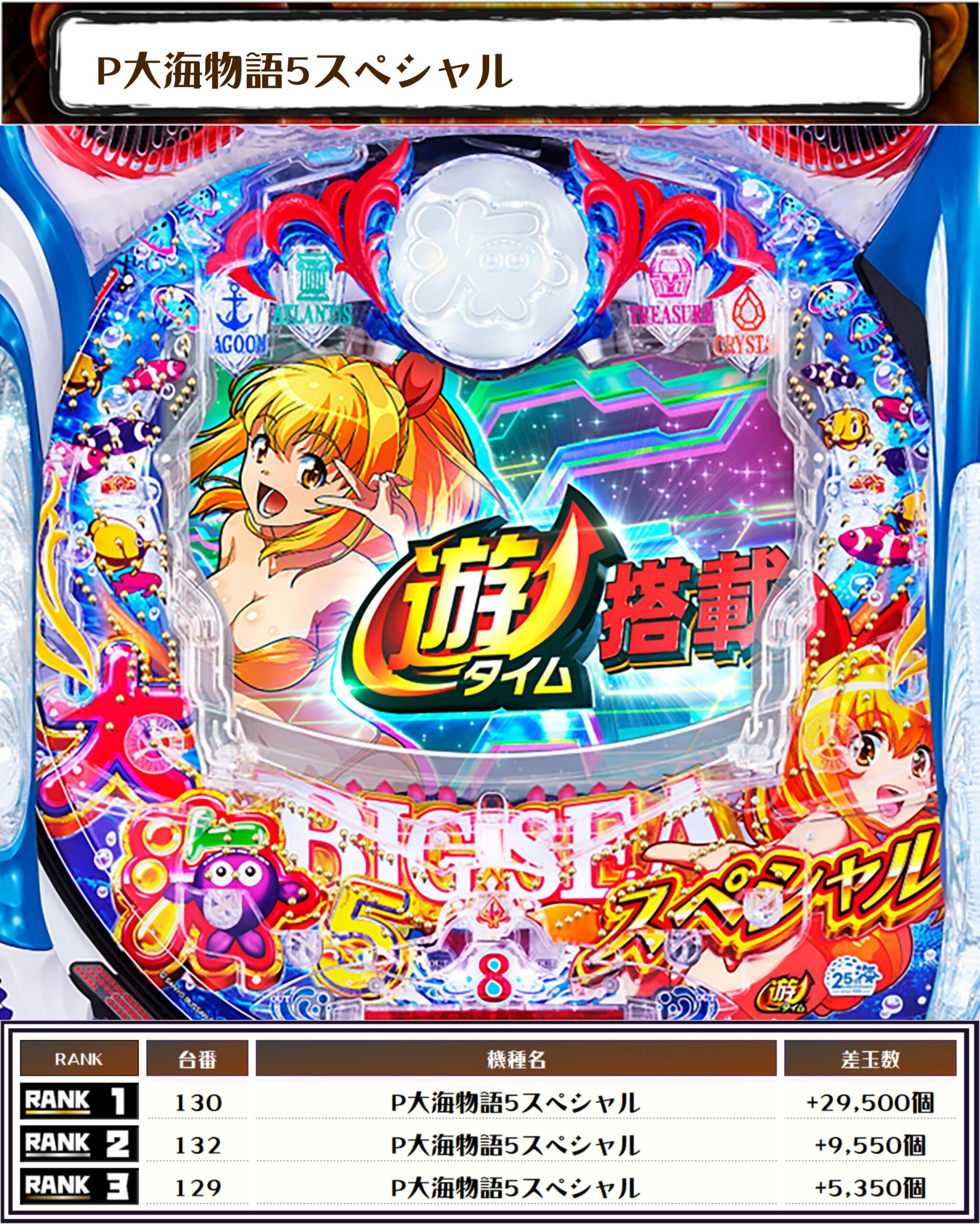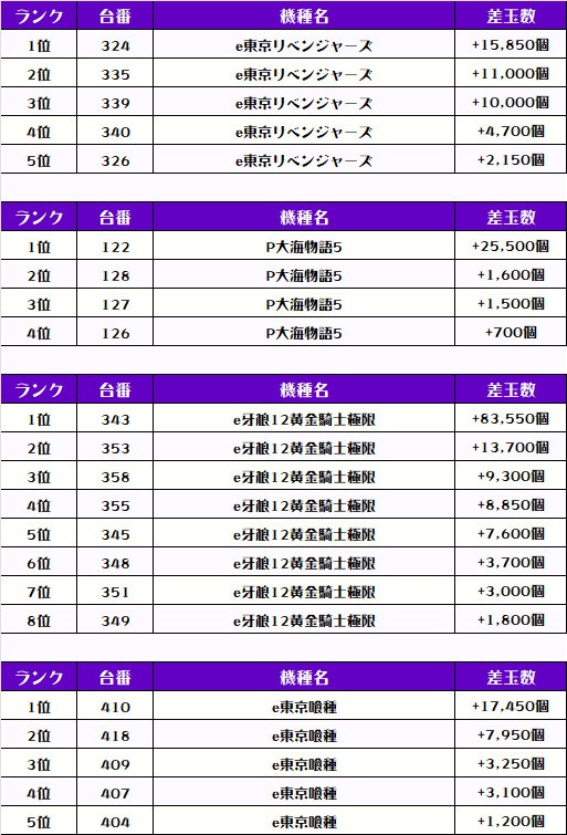 そして、ワシが注目した機種の差玉数ランキングを見てもらおう🥴