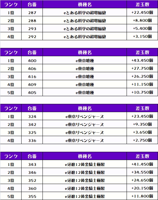 そして、ワシが注目した機種の差玉数ランキングを見てもらおう🥴