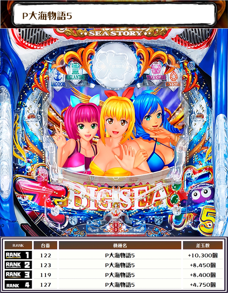 大海5スペシャルは昨日に引き続きのピックアップじゃ!! そして大海物語5と海シリーズ2機種が健闘を見せてくれたのう🐡