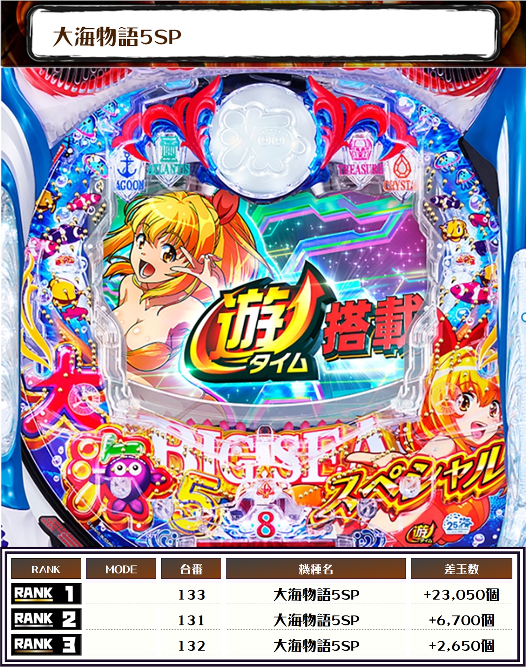 そして、ワシが注目した機種の差玉数ランキングを見てもらおう🥴