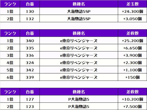 そして、ワシが注目した機種の差玉数ランキングを見てもらおう🥴