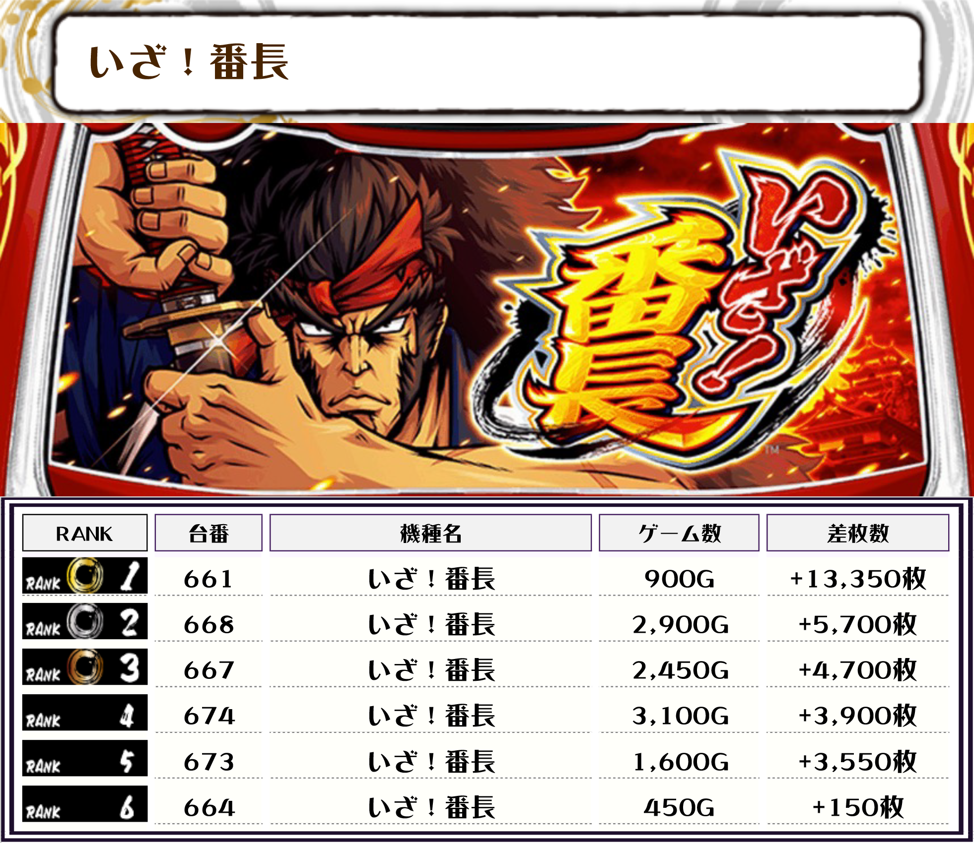 この日の全体差枚トップは【いざ!番長・661番台】の+13,350枚っ🎉