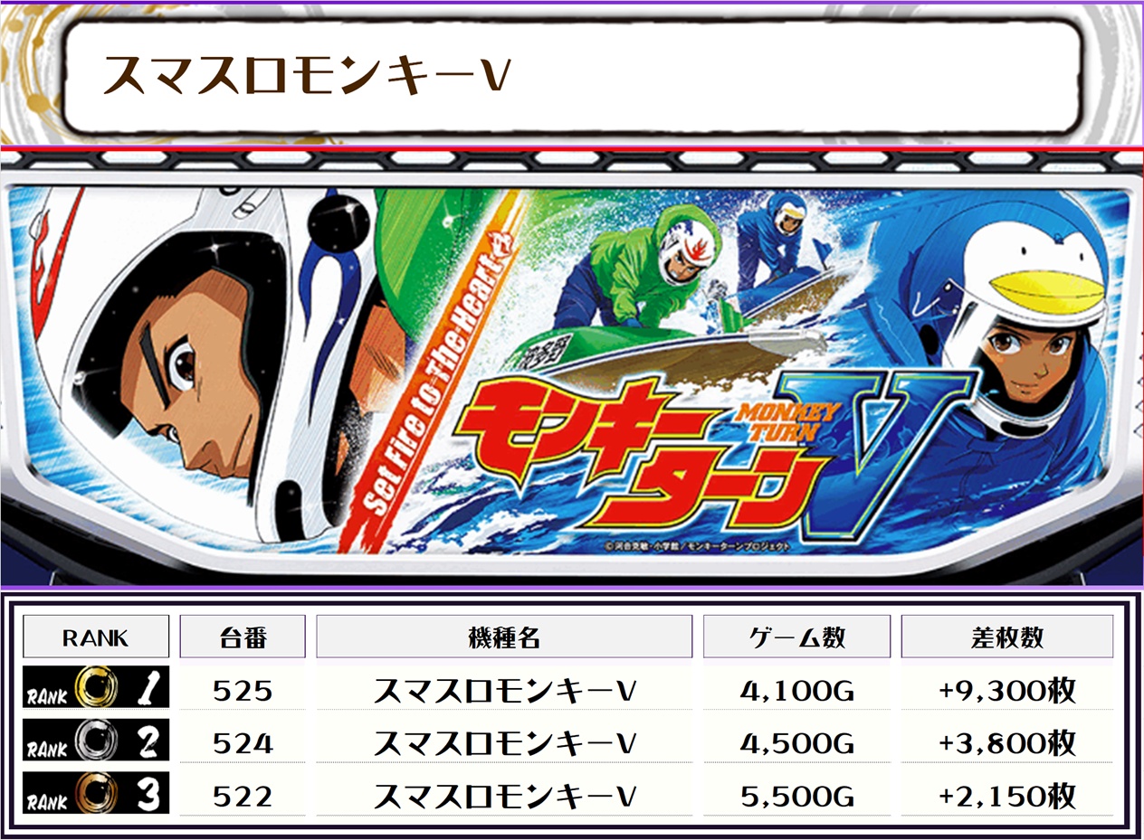 この日の全体差枚トップは【スマスロモンキーV・525番台】の+9,300枚っ🎉