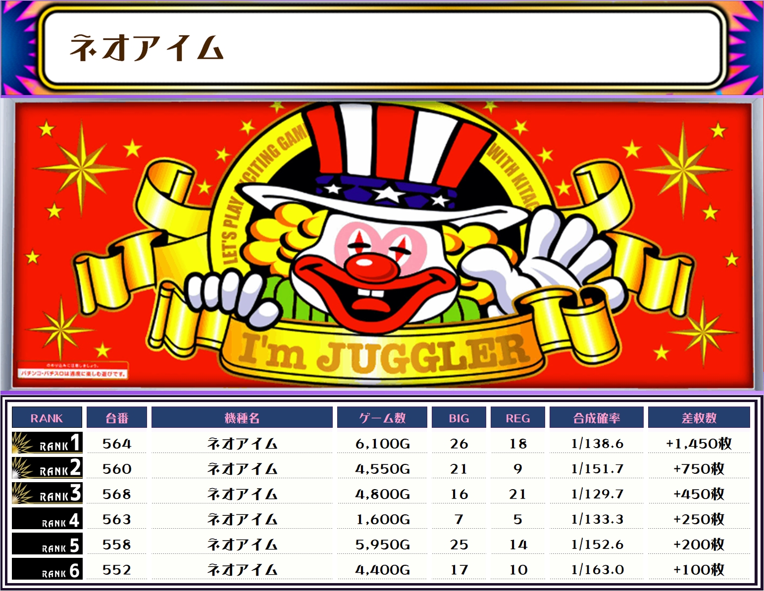 ちなみに、この取材では複数台設置の全機種および全体差枚トップ20をランキング形式でお伝えしていきます!!