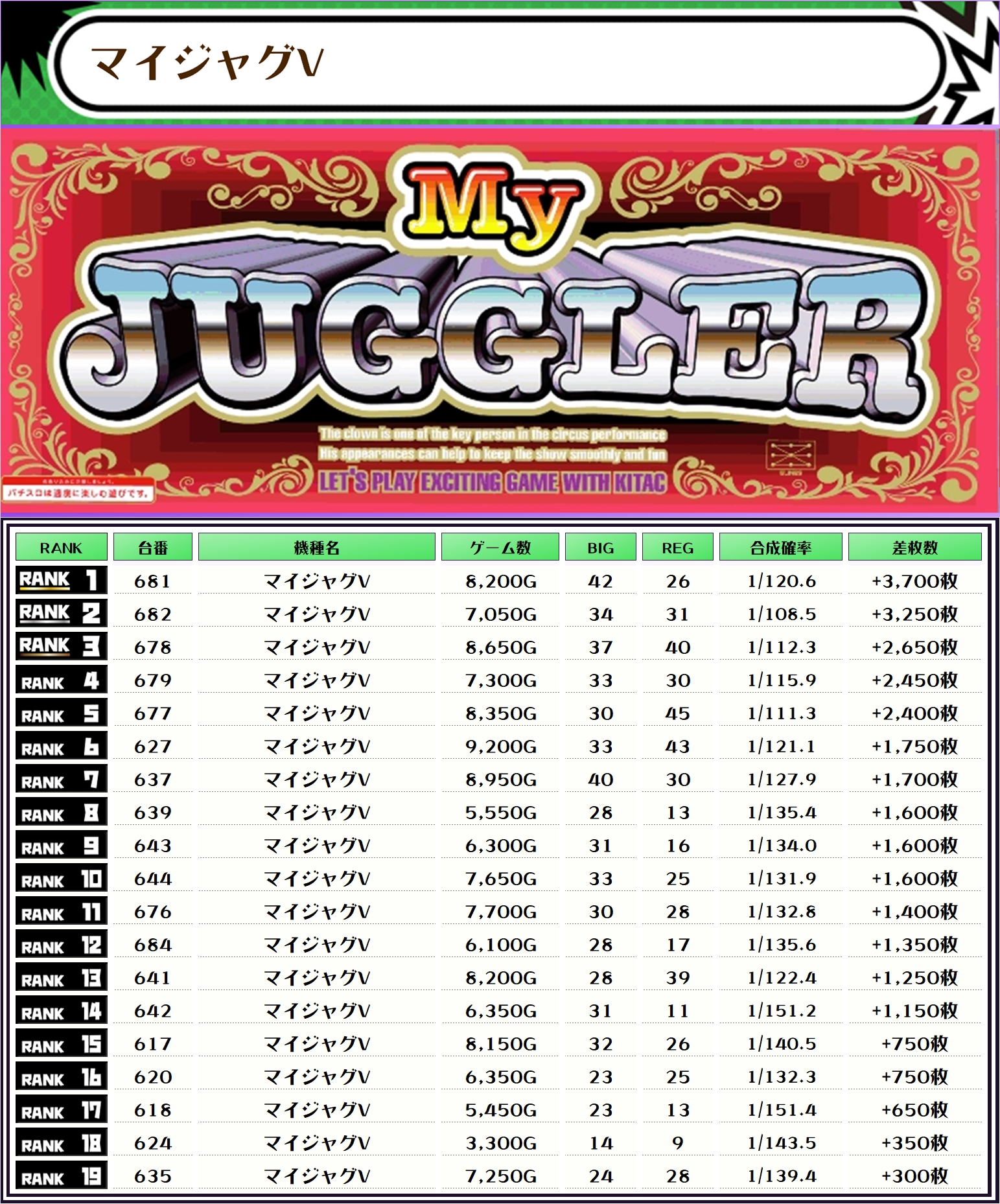 ちなみに、この取材では複数台設置の全機種および全体差枚トップ20をランキング形式でお伝えしていきます‼️