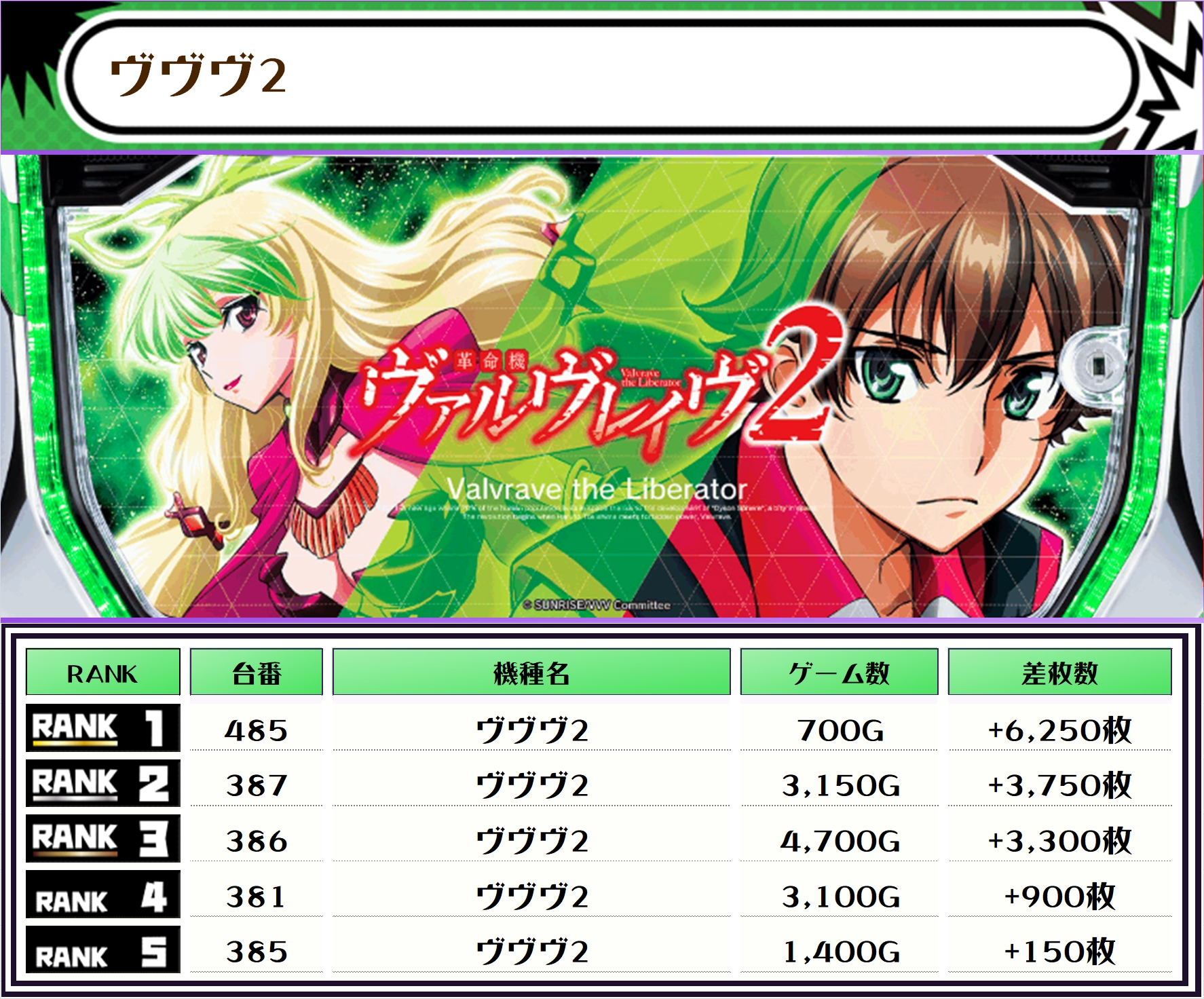 2位には【スマスロモンキーV・518番台】の+7,850枚、3位には【ヴヴヴ2・485番台】の+6,250枚がランクインしました📷