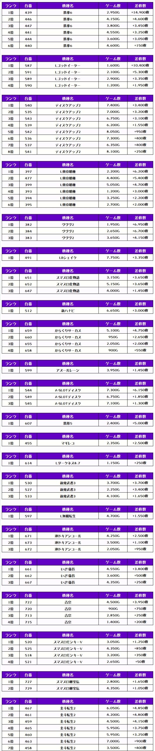 そして、全体の差枚ランキングがこちらっ🌟