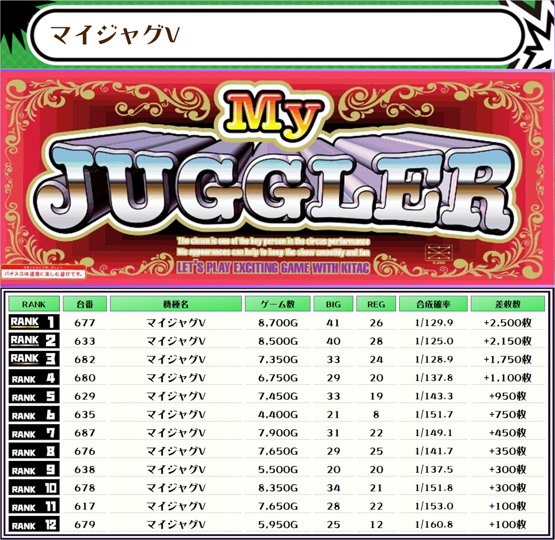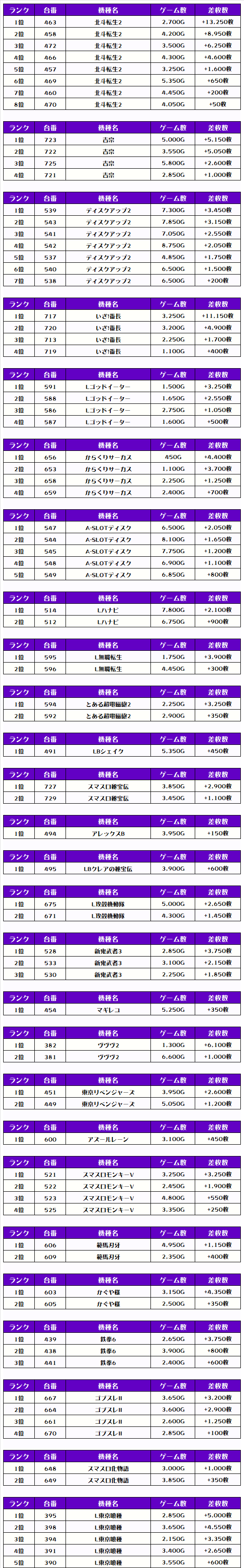 そして、全体の差枚ランキングがこちらっ🌟