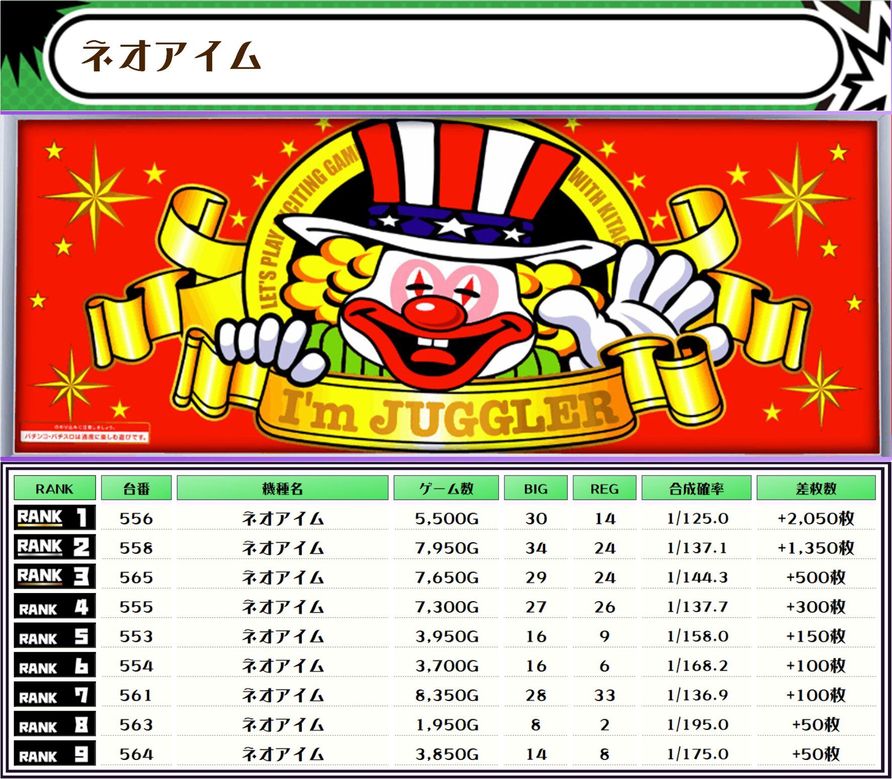 設置台数の多いマイジャグやネオアイムからも多くの優秀台が確認できました📝