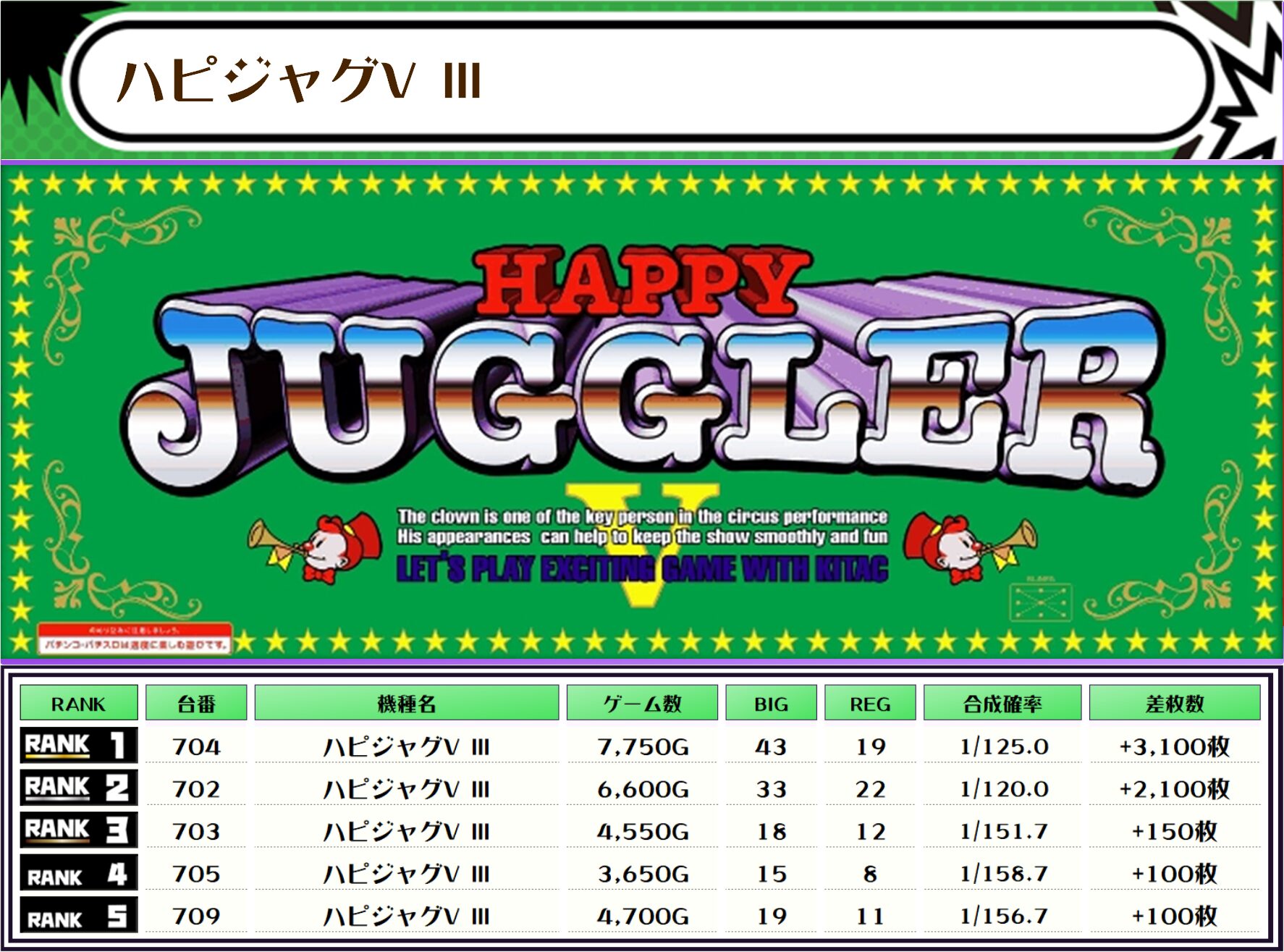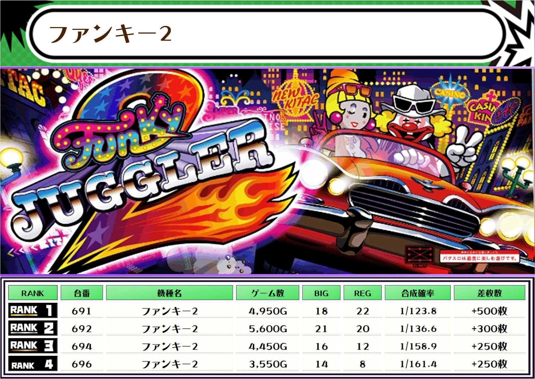 ちなみに、この取材では複数台設置の全機種および全体差枚トップ20をランキング形式でお伝えしていきます!!