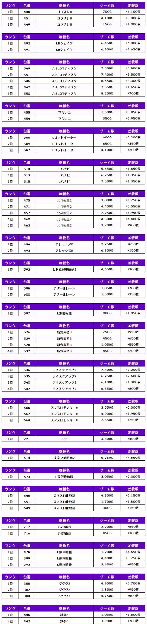 そして、全体の差枚ランキングがこちらっ🌟