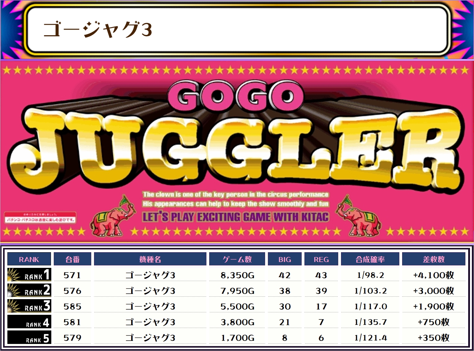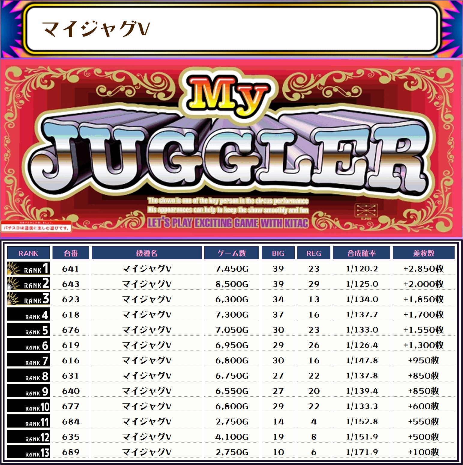 ちなみに、この取材では複数台設置の全機種および全体差枚トップ20をランキング形式でお伝えしていきます!!