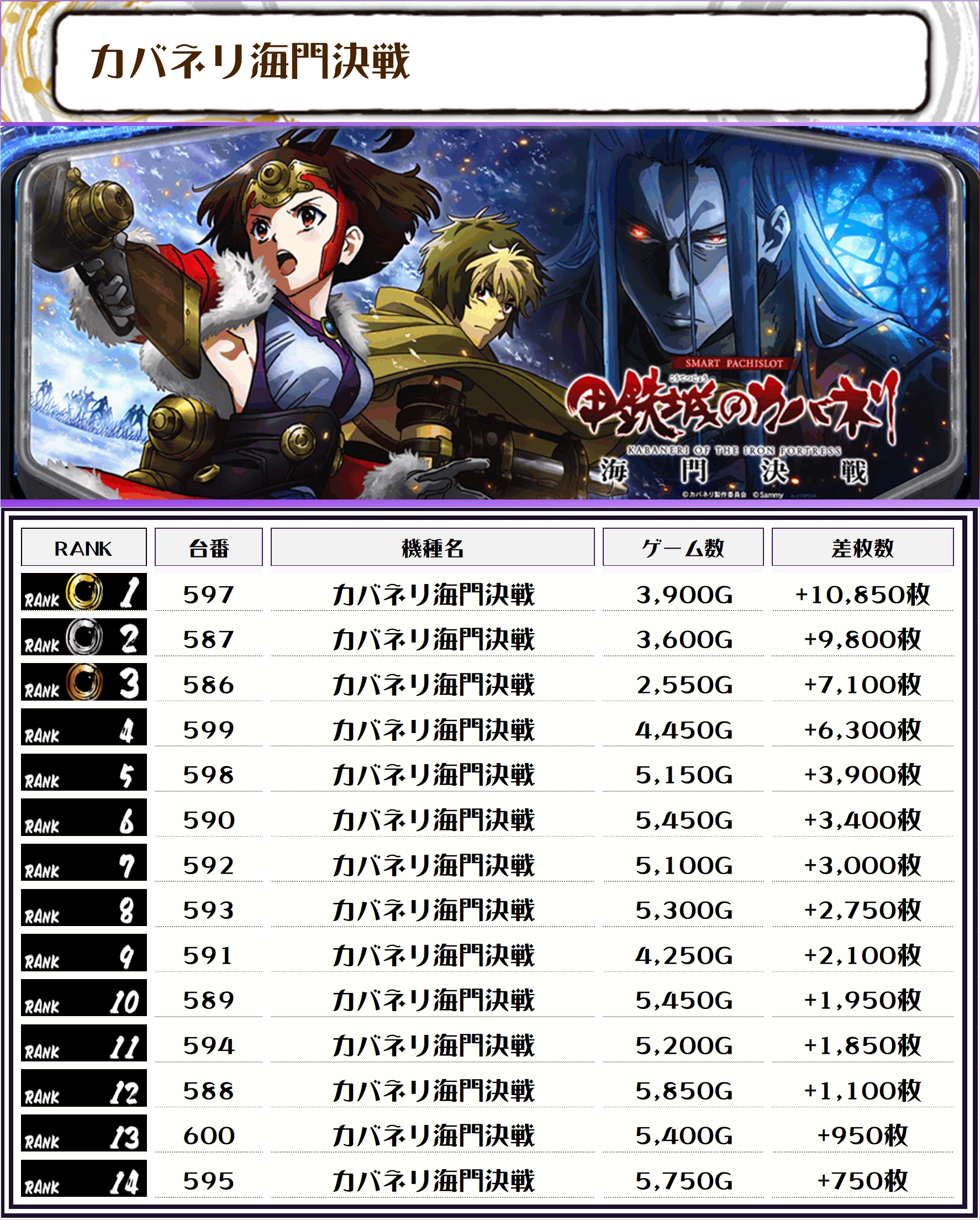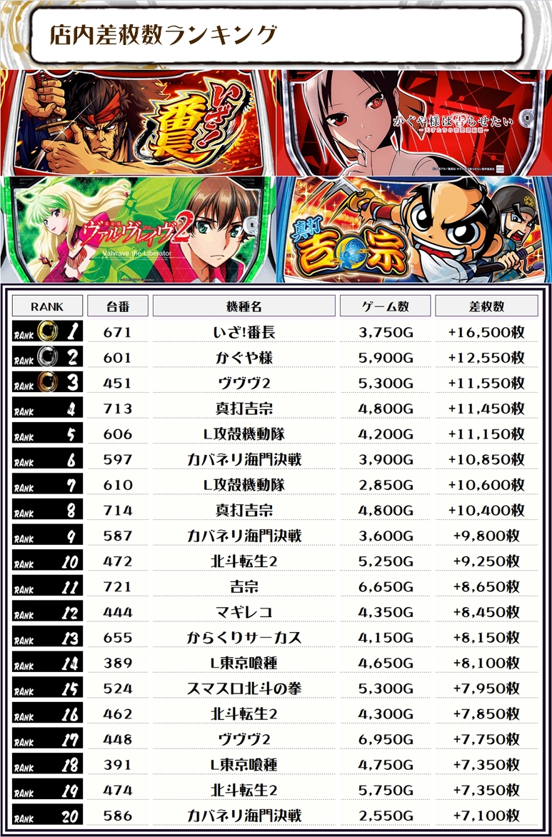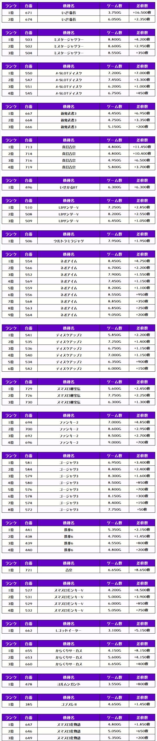 今回はなんと万枚突破が8台も出現しました!! ベスト20位で7,000枚台とは圧巻です👏👏👏👏👏