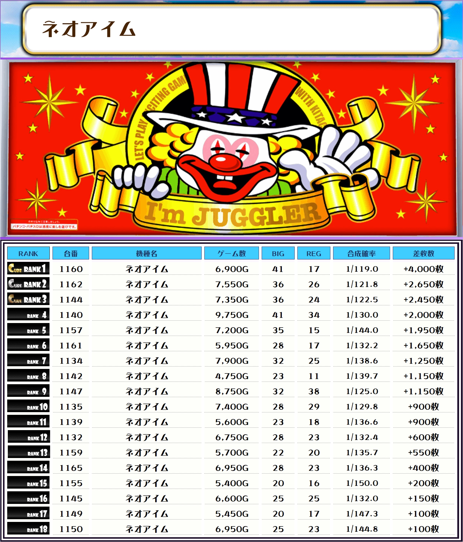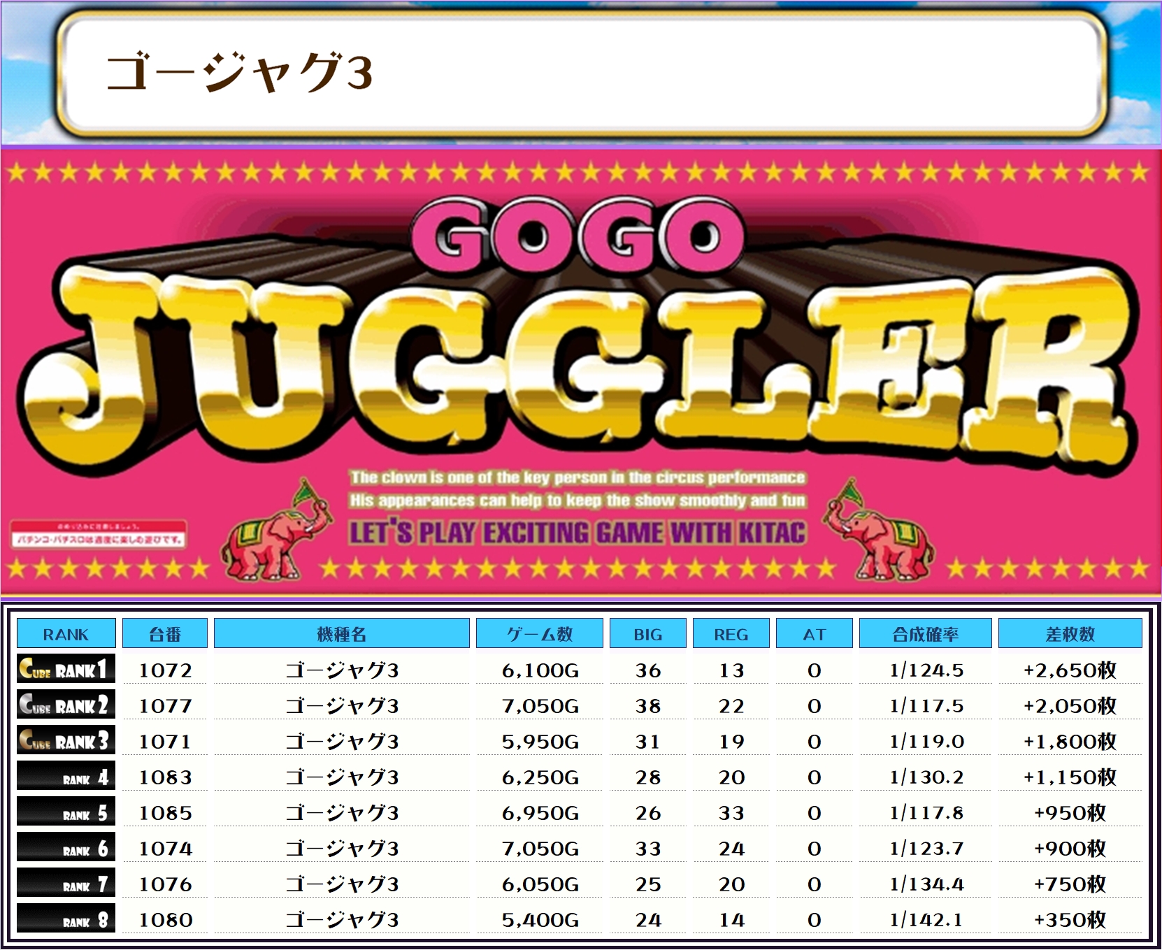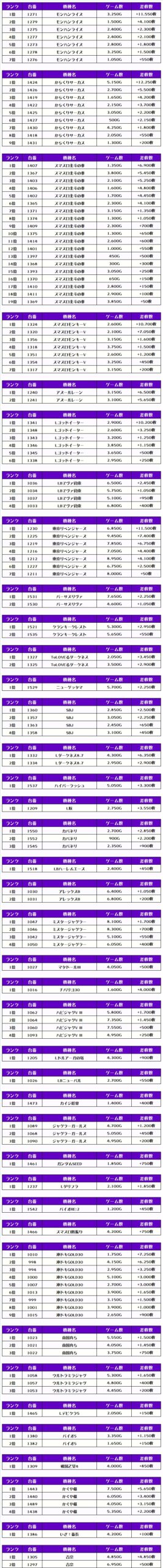それでは早速、この日の【機種別差枚ランキング】から見ていくでやんすっ❗️