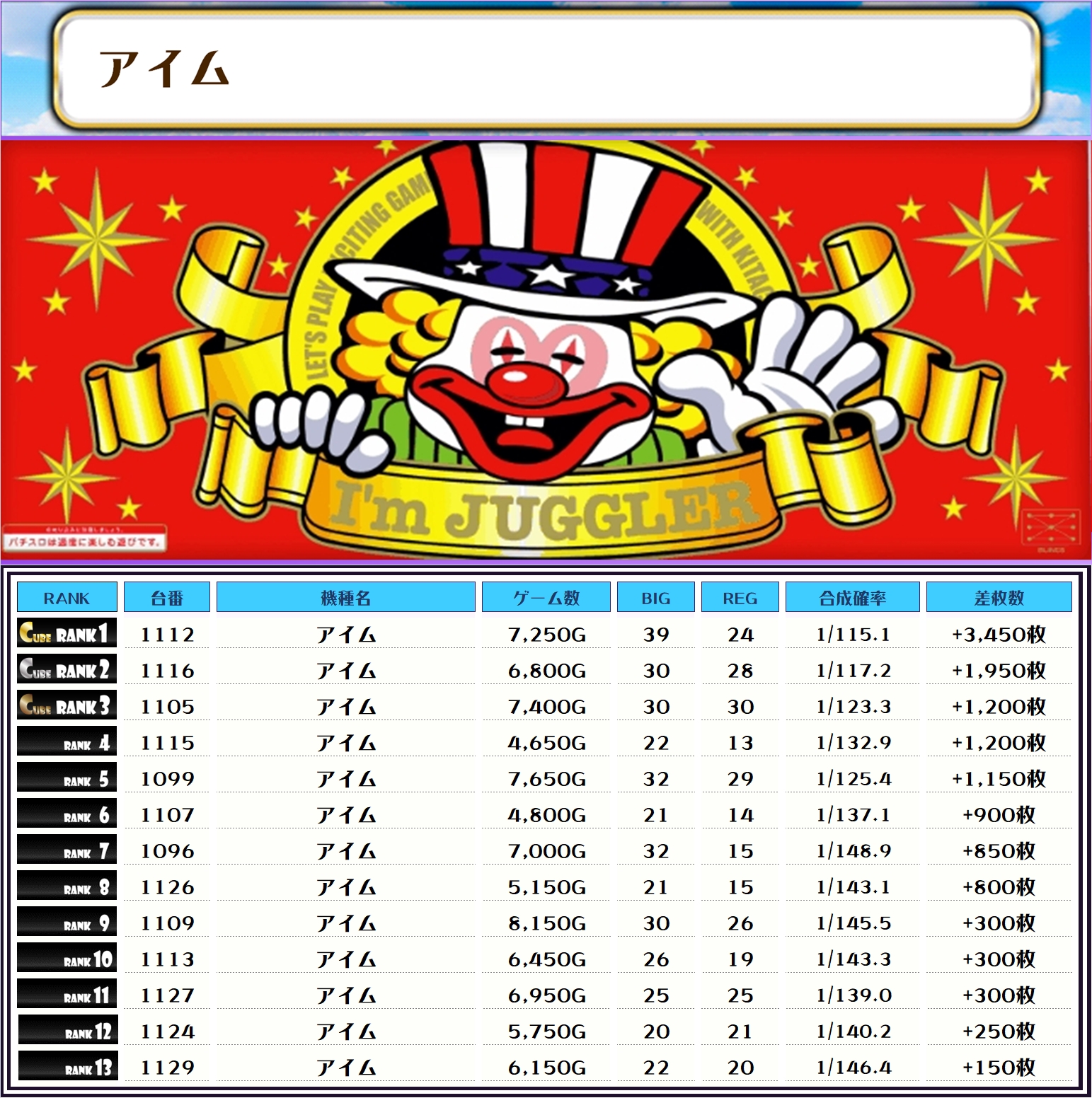 そして、この日全台を対象とした差枚ランキングがこちらでやんす❗️
