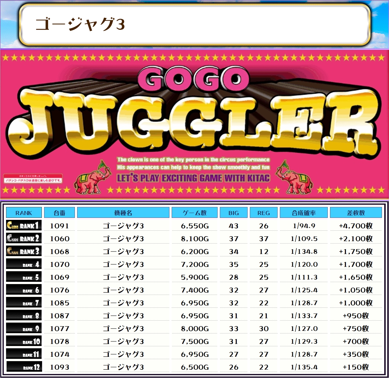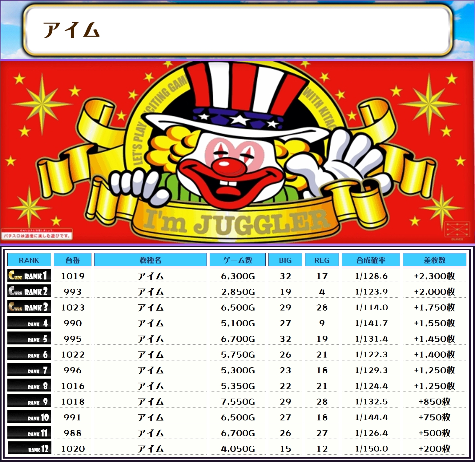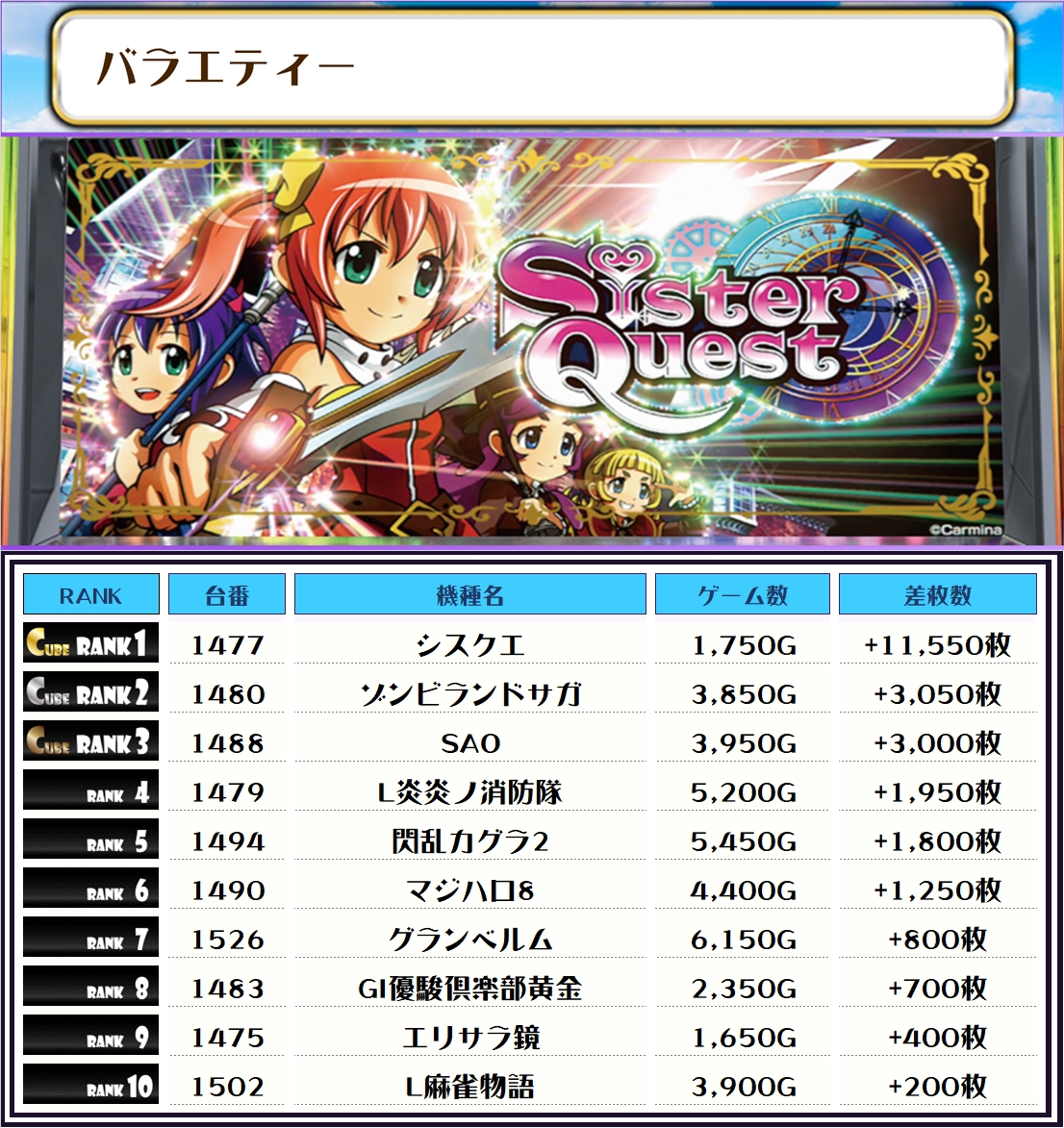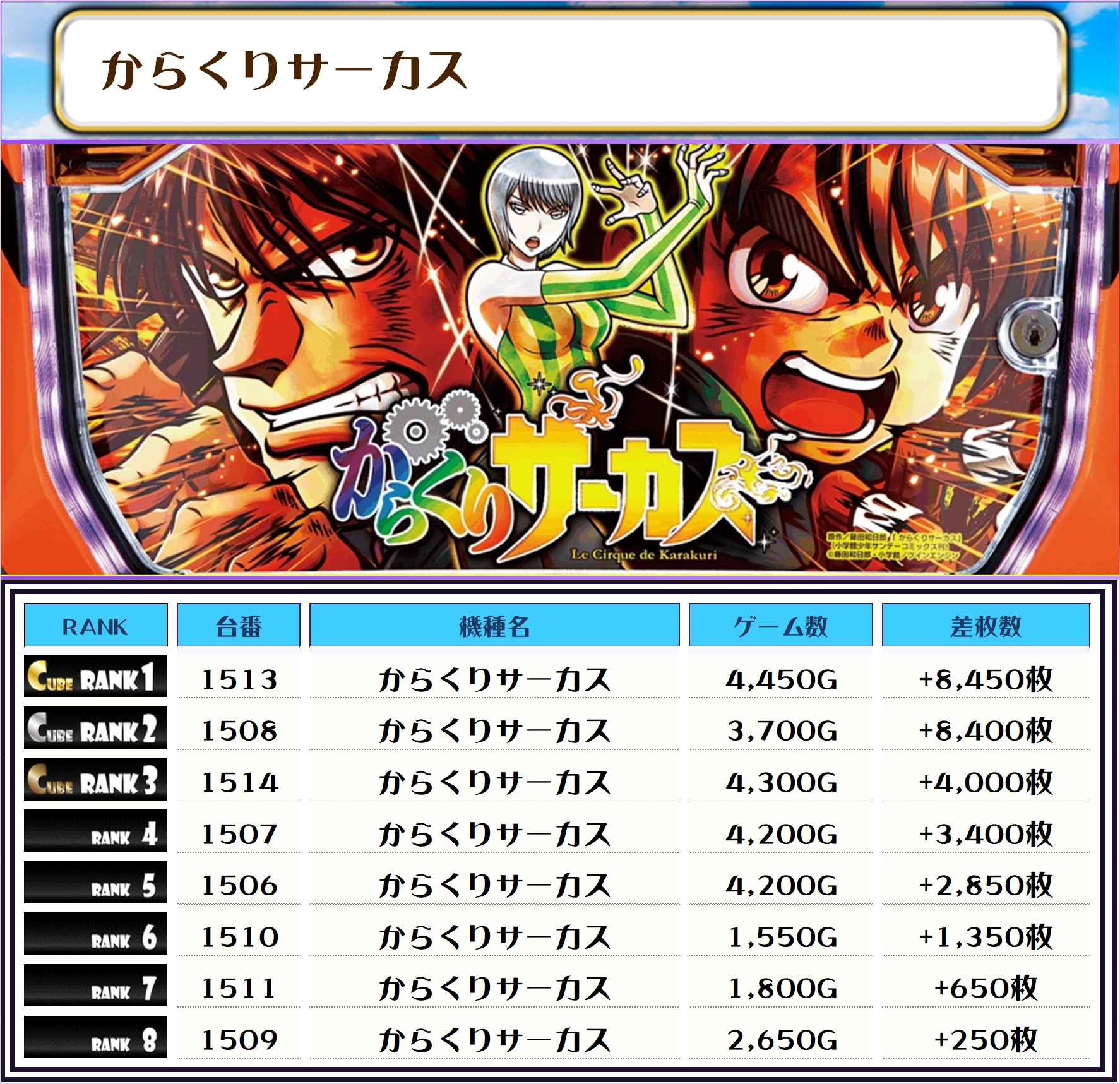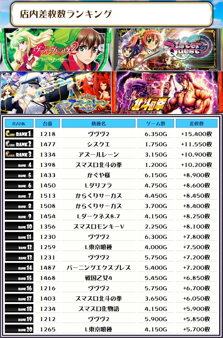 そして、この日全台を対象とした差枚ランキングがこちらでやんす❗️