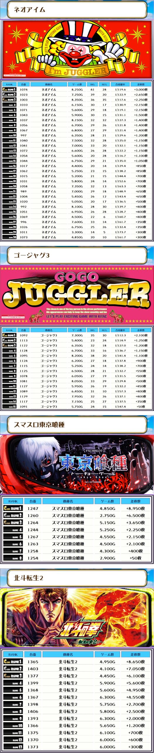 それでは早速、この日の【機種別差枚ランキング】から見ていくでやんすっ❗️