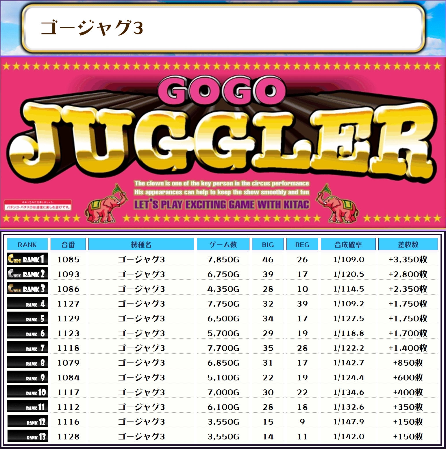 そして、この日全台を対象とした差枚ランキングがこちらでやんす❗️