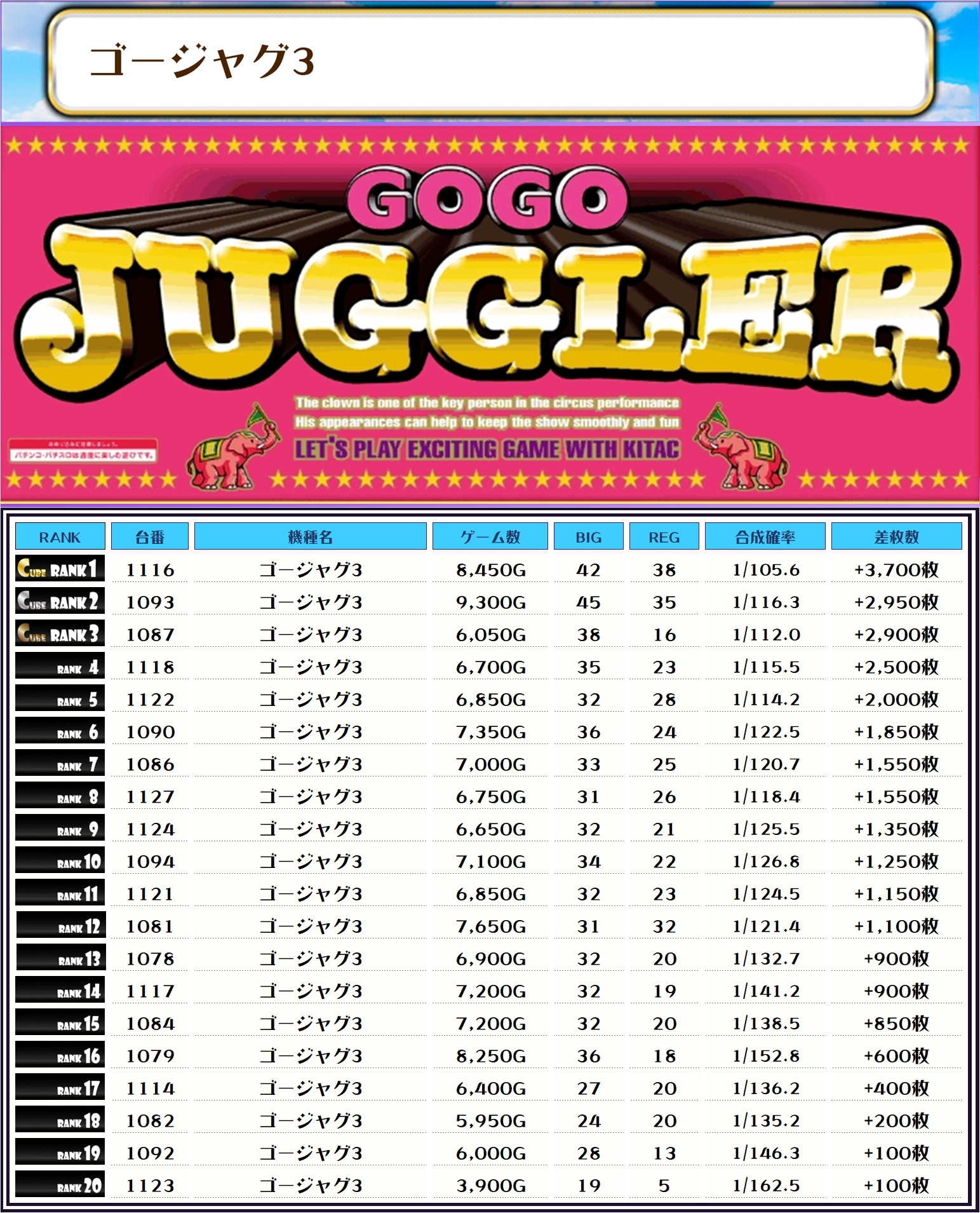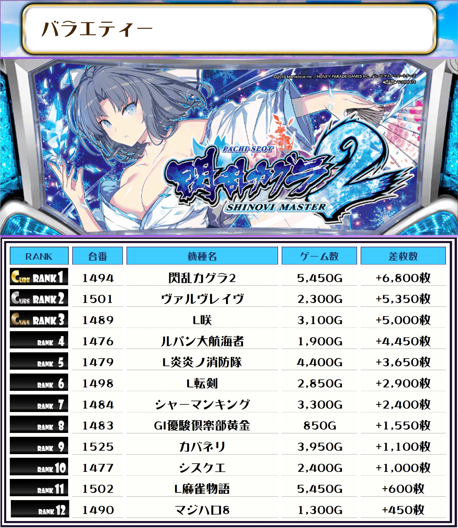 ランキングは20台中、18台が5000枚オーバーとなっていて、大いに盛り上がっていたでやんす🎲