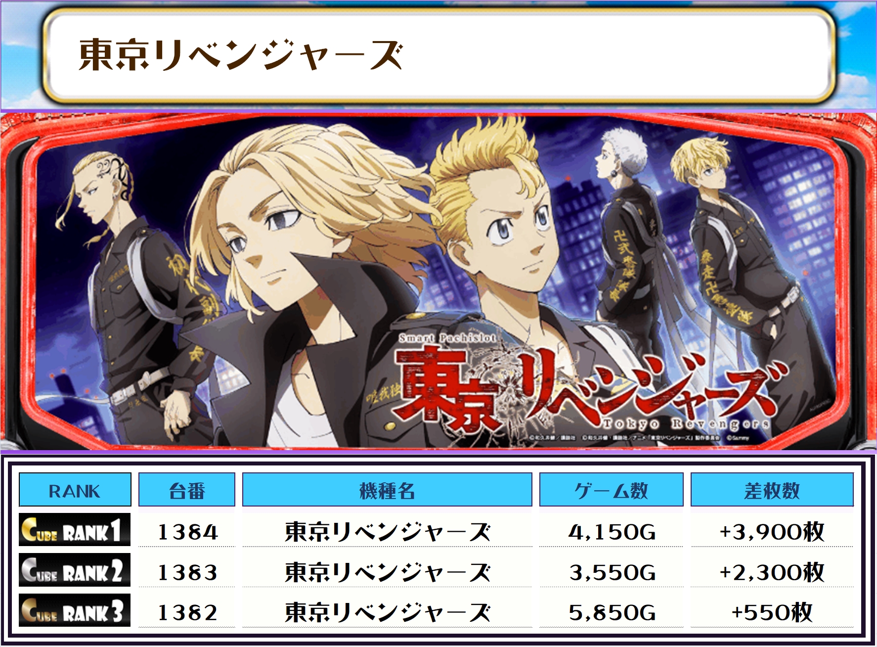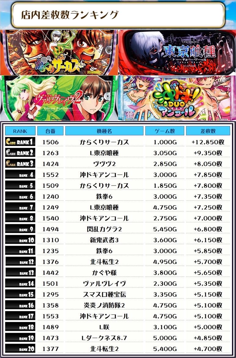 続く2位には【L東京喰種・1263番台】の+9,350枚、そして3位には【ヴヴヴ2・1424番台】の+8,050枚がランクインっ✨