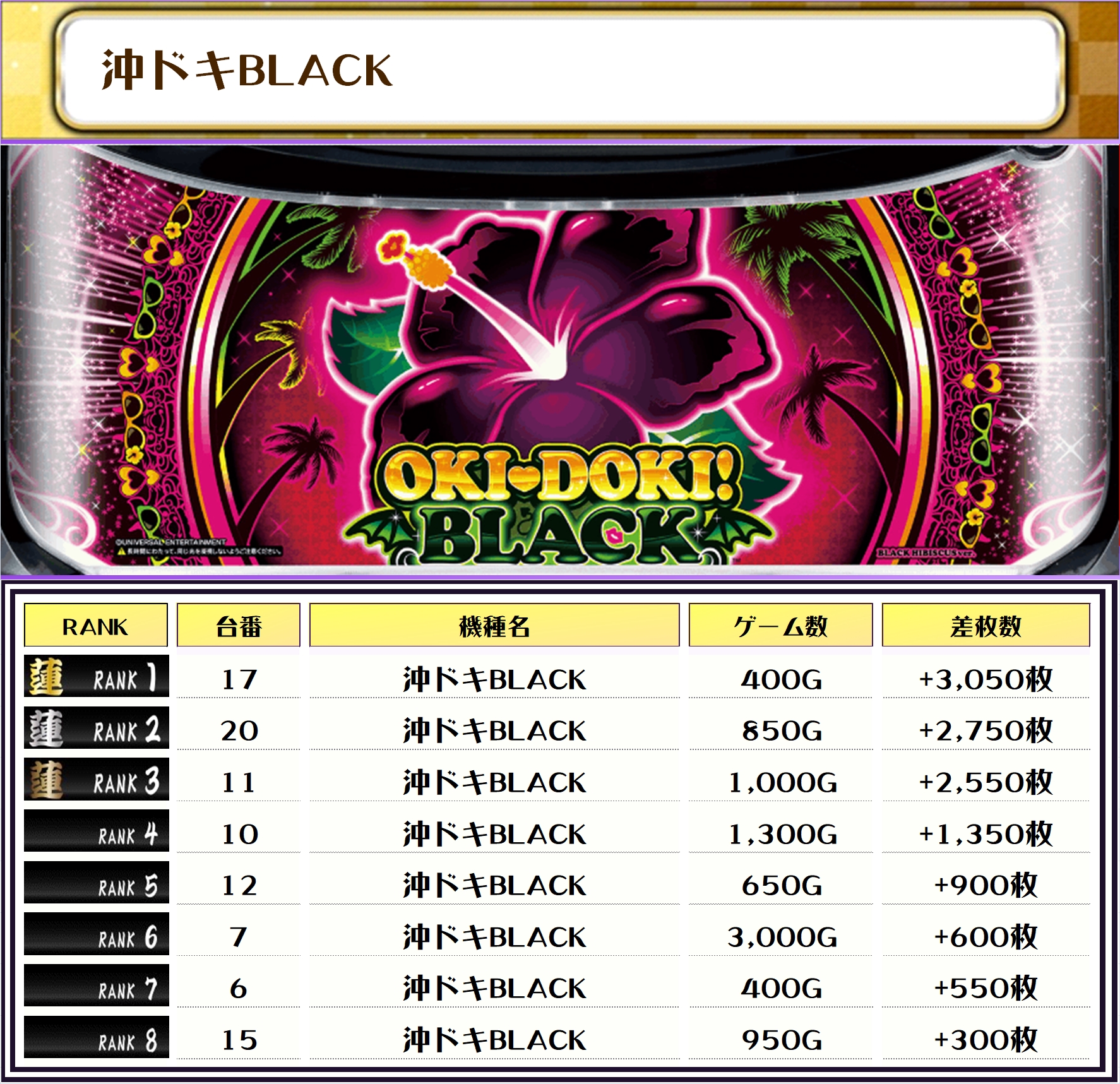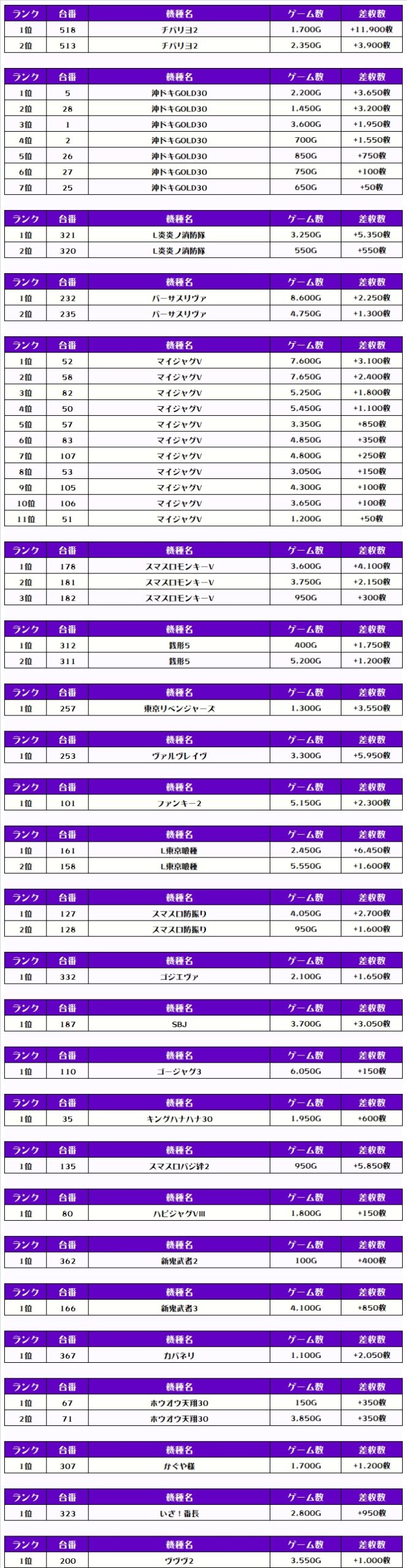 ちなみに、ピックアップしたのは稼働が好調で、優秀台が多かったと思われる機種になります👍