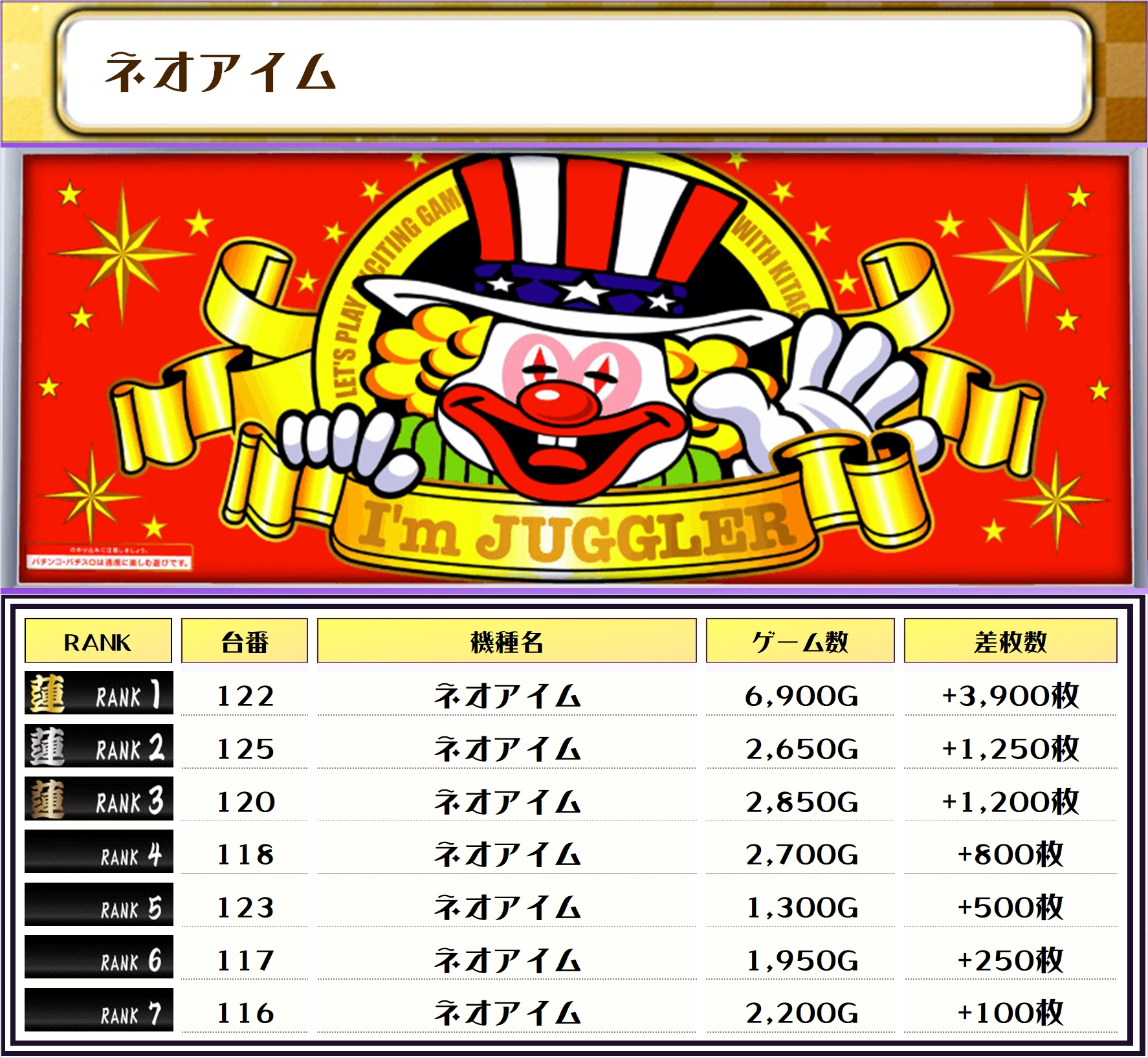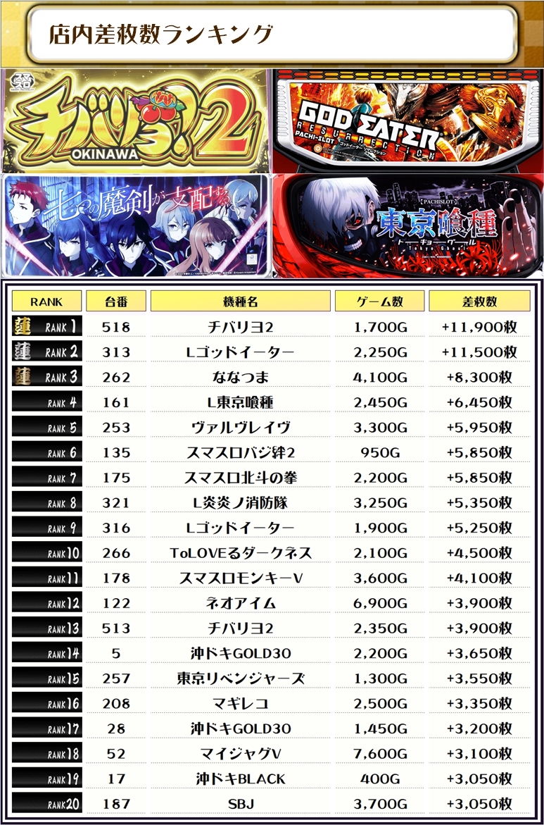 最後に、この日の店内差枚ランキングをご覧ください❗️
