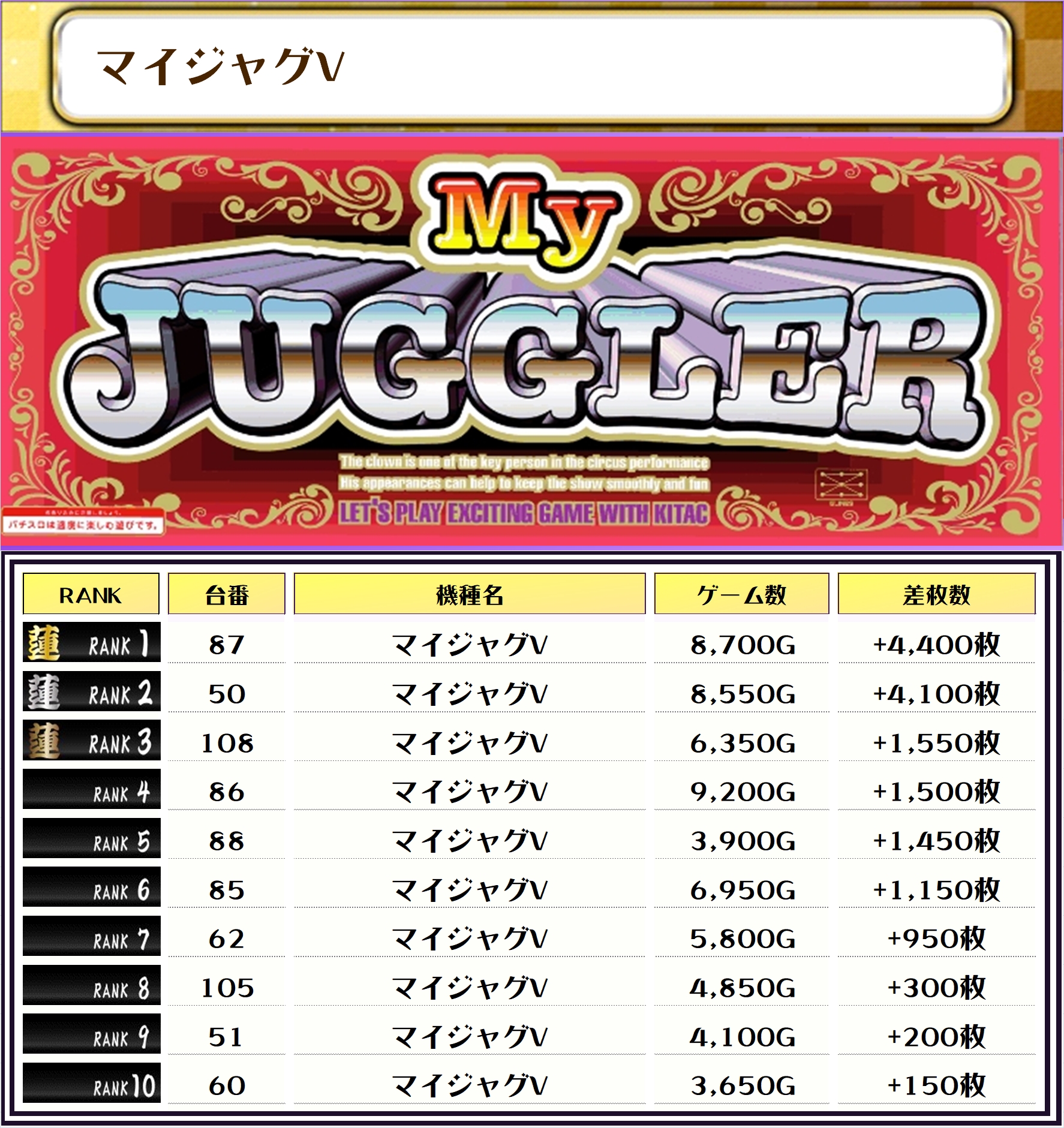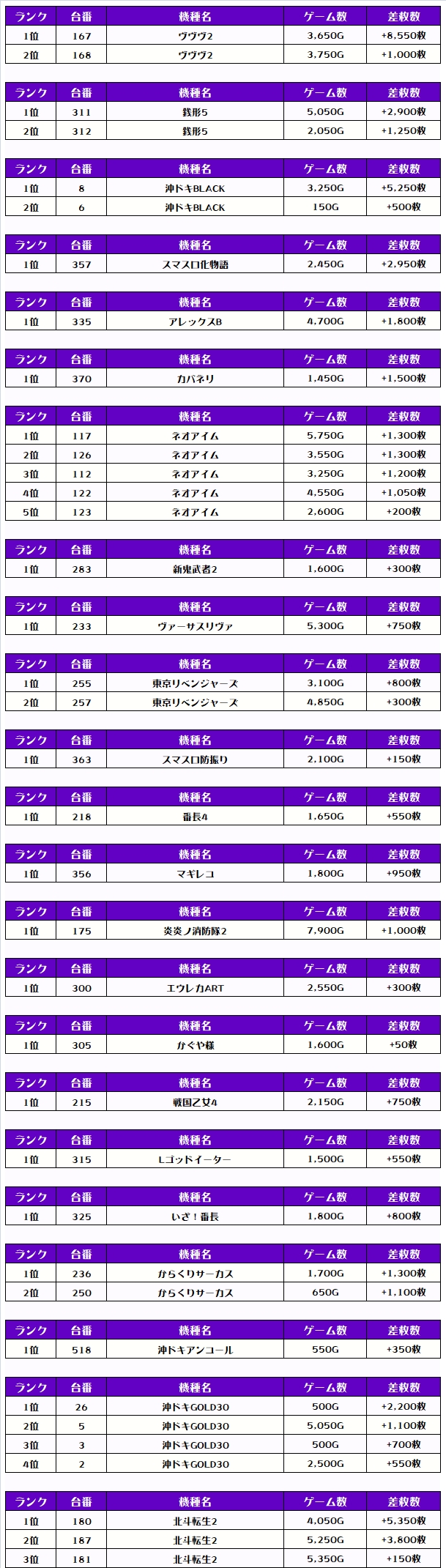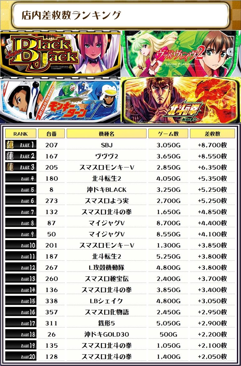 ちなみに、ピックアップしたのは稼働が好調で、優秀台が多かったと思われる機種になります👍